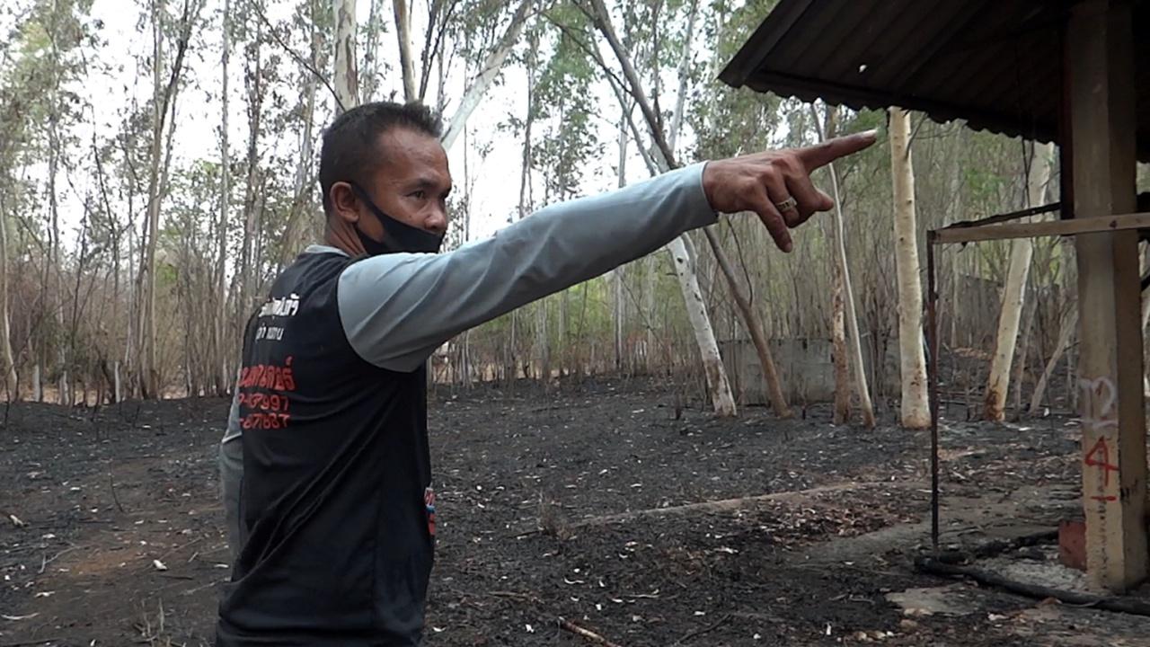 “ผู้ใหญ่ภูมิพัฒน์” ผู้ใหญ่บ้าน หมู่ 6 ต.รางบัว อ.จอมบึง จ.ราชบุรี ยืนยันไฟไหม้โรงเลี้ยงไก่เขาสนฟาร์มของ “เอ๋ ปารีณา” เกิดจากฝีมือมนุษย์ ไม่ใช่ไฟป่าแน่นอน