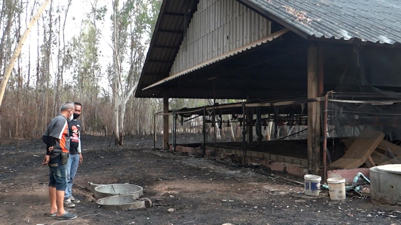 เกี่ยวกับเรื่องนี้เมื่อเวลา 16.30 น. วันที่ 12 เม.ย.63 ผู้สื่อข่าวได้เดินทางไปยังฟาร์มไก่ “เขาสนฟาร์ม” หมู่ 6 ต.รางบัว อ.จอมบึง จ.ราชบุรี เพื่อสอบถามข้อเท็จจริงจาก นายภูมิพัฒน์ จำปาทอง ผู้ใหญ่บ้าน หมู่ 6 ต.รางบัว โดยให้ข้อมูลว่า เหตุไฟไหม้โรงเลี้ยงไก่ ภายในเขาสนฟาร์มนั้นเกิดจากฝีมือมนุษย์ ไม่ใช่เกิดจากไฟป่าอย่างแน่นอน ช่วงเกิดเหตุเวลา 12.20 น. ตนได้รับแจ้งจากชาวบ้านที่เลี้ยงวัวว่าเกิดไฟไหม้ภายในฟาร์ม ตนกับครอบครัวจึงรีบเดินทางไปที่เกิดเหตุ พร้อมโทรแจ้งเจ้าหน้าที่ป้องกันและบรรเทาสาธารณภัย อบต.รางบัว ให้เข้ามาดับเพลิงที่กำลังลุกลามเข้าไหม้โรงเรือนเลี้ยงไก่ ซึ่งตนได้เดินทางมาจุดเกิดเหตุเป็นคนแรก และตนกับครอบครัวยังช่วยกับดับไฟไม่ให้ลุกลามเข้าโรงเลี้ยงไก่ จนลูกสาวได้รับบาดเจ็บ