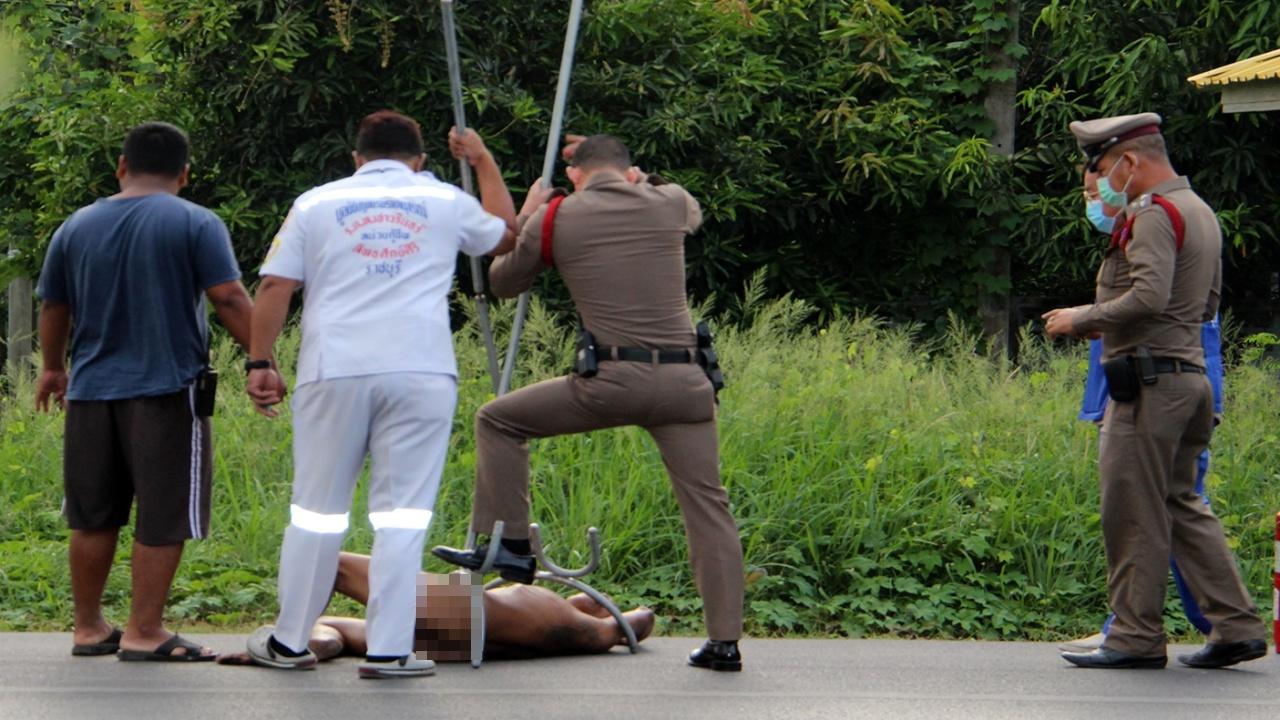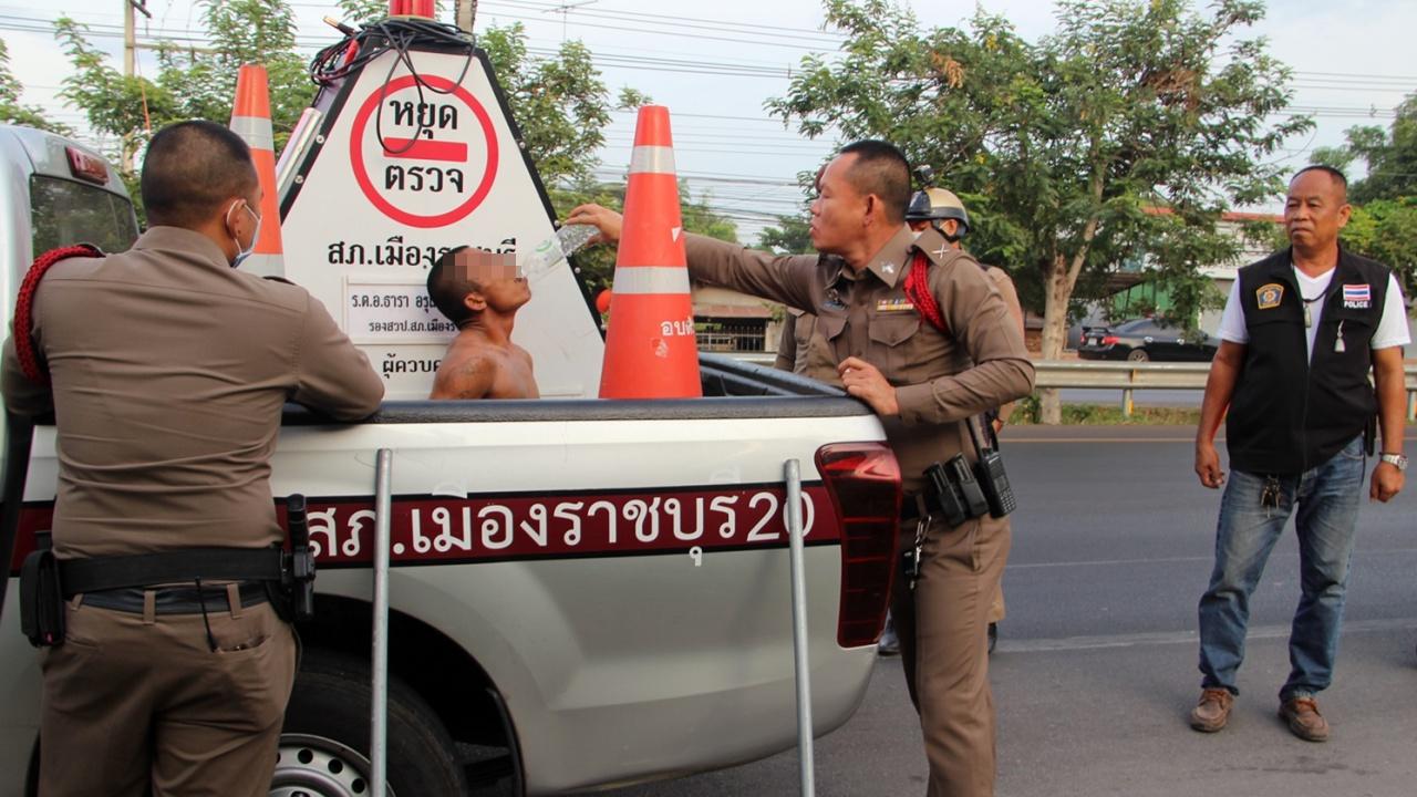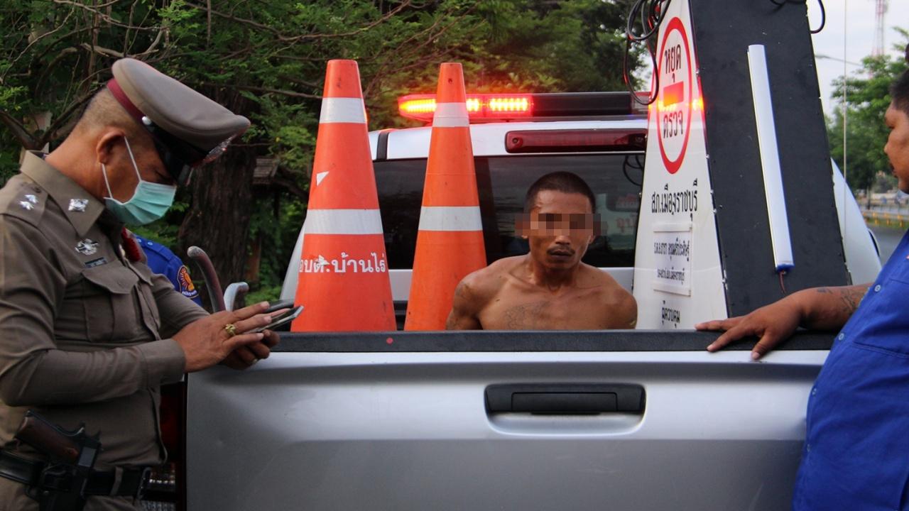 นาทีระทึก ตำรวจเมืองราชบุรี รุมจับหนุ่มคลุ้มคลั่งอาละวาด เดินแก้ผ้าเอาน้ำมันราดตัว ถือถังดับเพลิงฉีดไปตามถนน พร้อมหยิบก้อนหินและท่อนไม้พยายามจะทุบรถยนต์ที่วิ่งผ่านไปมา
