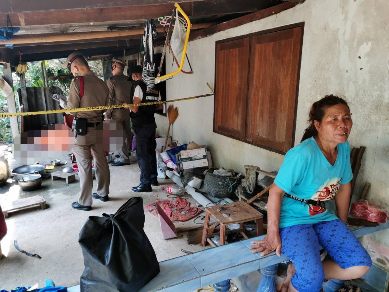 สอบสวน นางสมพร ผลจันทร์ อายุ 53 ปี แม่ของผู้ก่อเหตุ และเป็นภรรยาผู้ตายและเป็นลูกสาวของนางอ่อนผู้ตาย ได้ให้ข้อมูลว่า ทั้งหมดได้อาศัยอยู่ในบ้านหลังเดียวกัน ที่ได้ขยายห้องเพิ่มขึ้นด้านข้างขณะเกิดเหตุตนเองไปกรีดยางพาราอยู่ในสวน เมื่อกลับมาก็สงสัยว่าทำไมมีเพื่อนบ้านมาที่บ้านเต็มไปหมด และเมื่อได้เห็นศพของสามีและแม่ที่นอนตายจมกองเลือดอยู่ ก็ตกใจจนเกือบช็อก ไม่คาดคิดว่าจะเกิดเหตุการณ์ร้ายแบบนี้