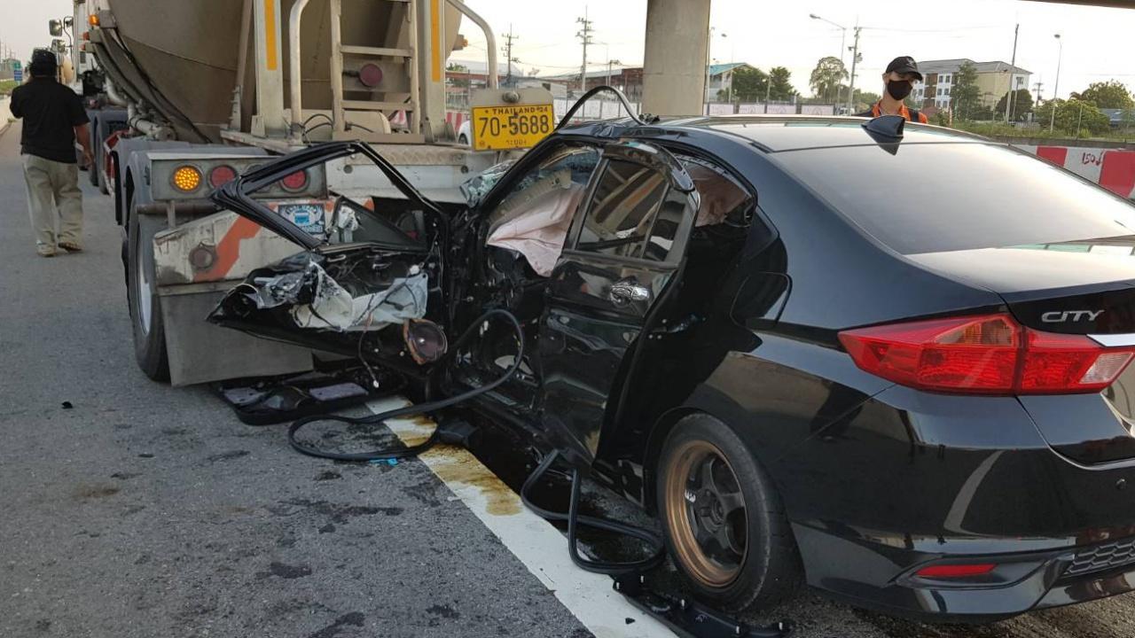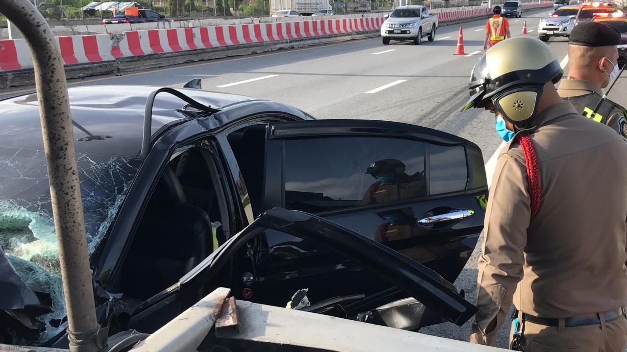 เอเย่นต์ยานรกซิ่งเก๋งเสยท้ายรถพ่วง 18 ล้ออย่างจัง เสียชีวิตคาที่ริมถนนมอเตอร์เวย์ สาย 7 ตอนที่ 2 ฝั่งขาเข้าชลบุรี ตำรวจ สภ.หนองขาม พบยาบ้า 200 เม็ด ไอซ์อีกเพียบ เร่งตรวจสอบภาพจากกล้องวงจรปิด ขับรถหนีใครมาหรือไม่