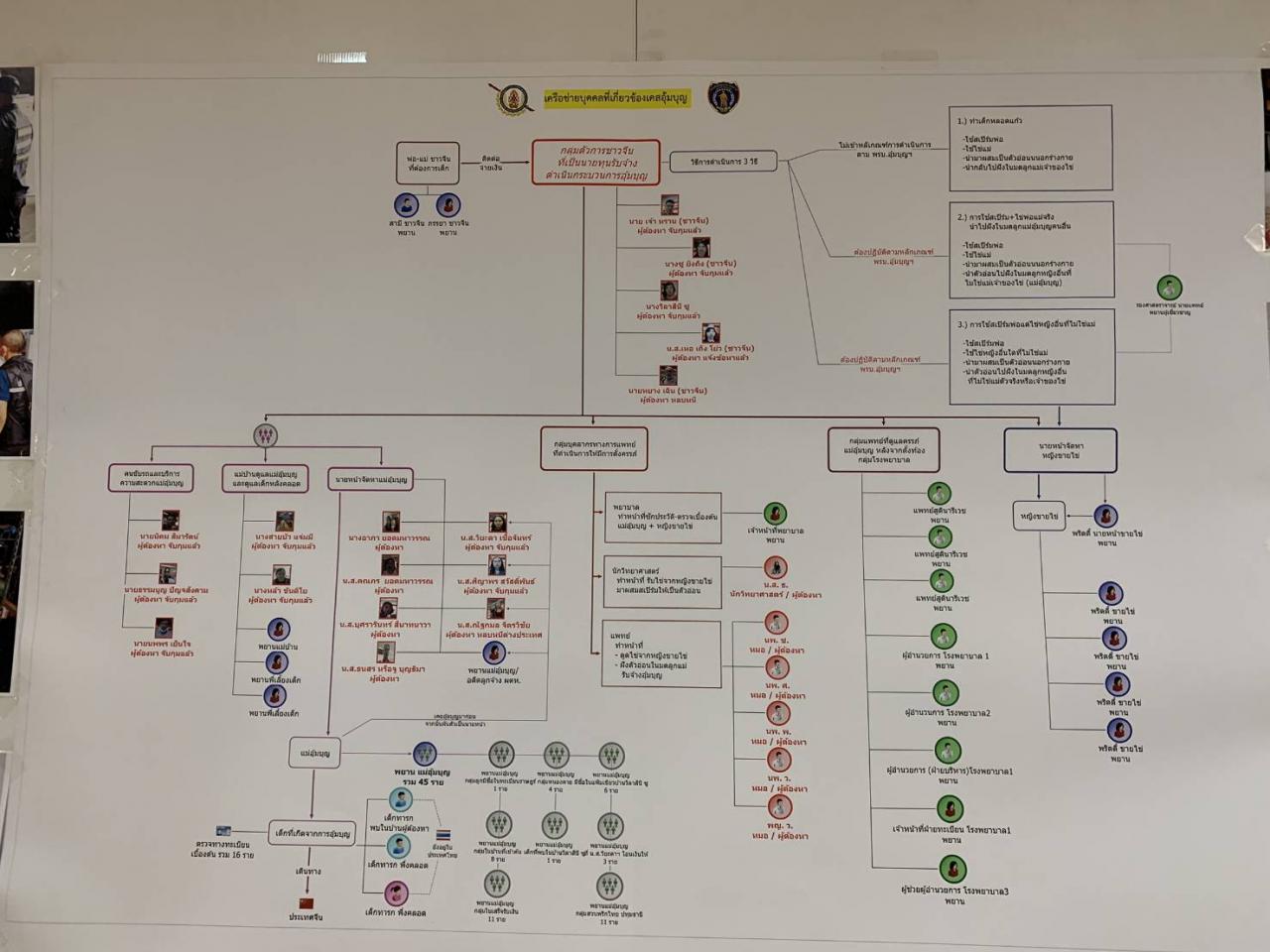 กรณี บก.ปคม. ร่วมคอมมานโด 904 และหน่วยงานที่เกี่ยวข้อง บุกทลายเครือข่ายขบวนการอุ้มบุญข้ามชาติ ค้นเป้าหมาย 10 จุด รวบ 2 ผัวเมียชาวจีน และคนไทยร่วมแก๊ง 9 คน ยึดทรัพย์ร่วม 100 ล้านบาท สุดอึ้ง 1 ในบ้านเป้าหมายที่ตรวจค้นย่านนาคนิวาส พบทารกวัยแบเบาะ 2 คน และหญิงไทยที่รับจ้างตั้งท้องอีก 7 คน ตำรวจยังไม่แจ้งข้อหา แต่คัดแยกออกมาในฐานะเหยื่อ กลุ่มนายหน้าชาวจีนรับออเดอร์จากเศรษฐีชาวจีนที่ต้องการบุตร ด้วยการชักชวนสาวไทยให้ตั้งท้องแทนในราคา 4-5 แสนบาท ต่อการคลอดลูก 1 คน แต่ถ้าได้ฝาแฝดค่าจ้างจะสูงถึง 6 แสนบาท หากตกลงกันได้จะพาไปฉีดสเปิร์มที่ประเทศเพื่อนบ้านเพื่อเลี่ยงกฎหมาย เมื่อตั้งท้องแล้วจะพากลับมาประคบประหงมในไทย ก่อนจะพาไปคลอดที่จีน เมื่อวันที่ 13 ก.พ.63 ตามที่เสนอข่าวไปแล้วนั้น