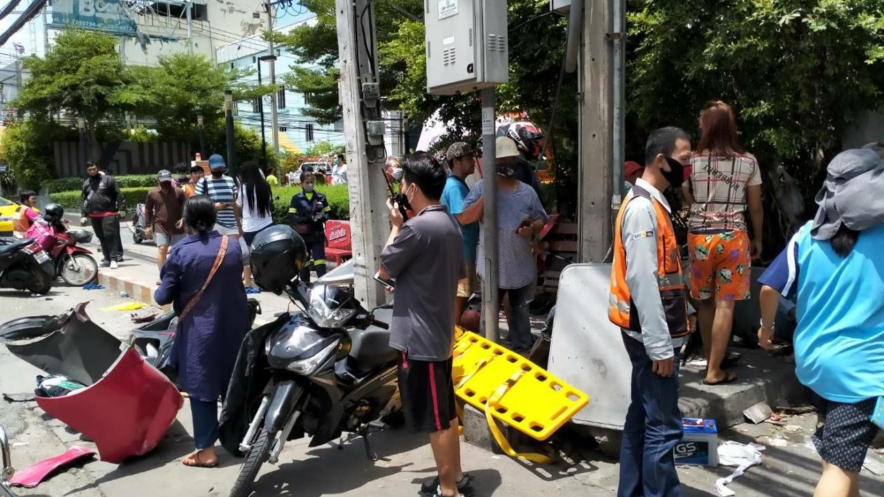 เมื่อเวลา 12.30 น. วันที่ 12 มิ.ย.2563 ร.ต.ท.อดิรุจน์ คงปลอด รอง สว.(สอบสวน) สน.หัวหมาก รับแจ้งเหตุรถแท็กซี่เสียหลักเข้าข้างทางชนกับกลุ่มรถจักรยานยนต์ ส่งผลให้มีผู้ได้รับบาดเจ็บหลายราย บริเวณปากซอยรามคำแหง 60/1 ถนนรามคำแหง แขวงหัวหมาก เขตบางกะปิ กรุงเทพฯ จึงรุดไปตรวจสอบพร้อมเจ้าหน้าที่มูลนิธิร่วมกตัญญ