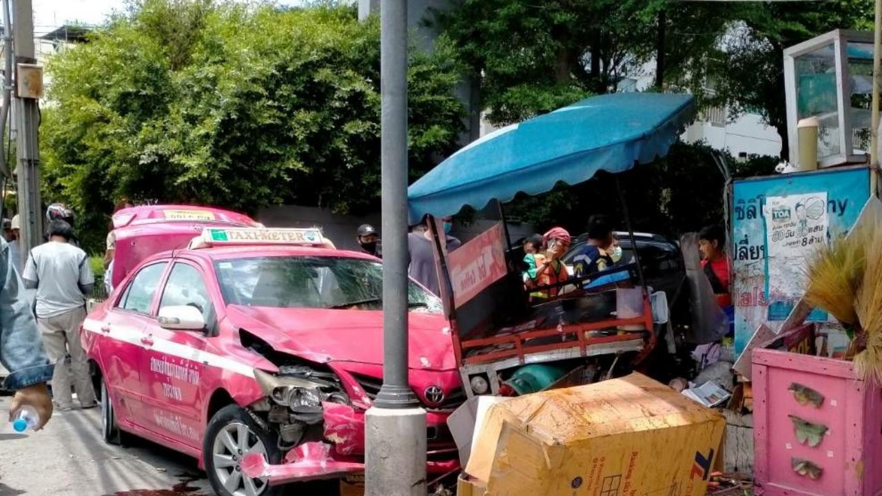 ที่เกิดเหตุอยู่ปากซอยรามคำแหง 60/1 พอดี โดยรถคันต้นเหตุเป็นรถแท็กซี่ยี่ห้อโตโยต้า รุ่นอัลติส สีชมพู หมายเลขทะเบียน ทษ 3188 กรุงเทพมหานคร สภาพด้านหน้าชนติดอยู่กับรถจักรยานยนต์ ซาเล้ง 3 ล้อขายกาแฟ อยู่ติดกับเสาป้ายบอกซอยรามคำแหง 60/1 พอดี โดยรอบบริเวณพบรถจักรยานยนต์ 4 คัน ล้มระเนระนาดอยู่บนถนน และมีคนเจ็บทั้งหมด 7 ราย เป็นผู้ชาย 5 ราย และผู้หญิง 2 ราย เจ้าหน้าที่นำส่ง รพ.รามคำแหง 2 ราย รพ.สมิติเวช ศรีนครินทร์ 1 ราย รพ.สิรินธร 2 ราย รพ.นวมินทร์ 9 จำนวน 1 ราย และ รพ.แพทย์ปัญญา 2 ราย