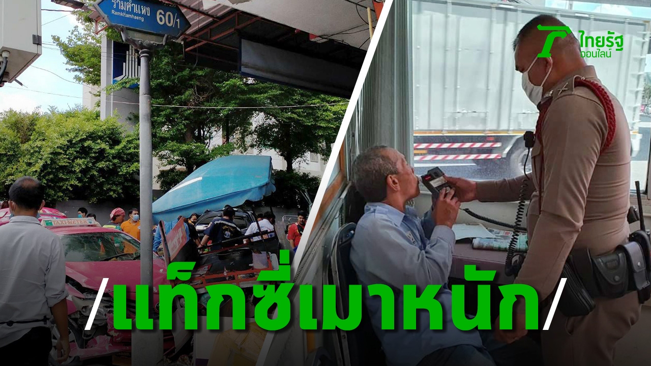 โชเฟอร์แท็กซี่เมาหนัก ซิ่งชนวิน จยย.ปากซอยรามคำแหง 60/1 กวาดเรียบทั้งคนทั้งรถ บาดเจ็บระนาว ตำรวจจับวัดปริมาณแอลกอฮอล์พบสูงถึง 147 มิลลิกรัมเปอร์เซ็นต์ เจ้าตัวรู้สึกเสียใจกับเหตุการณ์ที่เกิดขึ้น