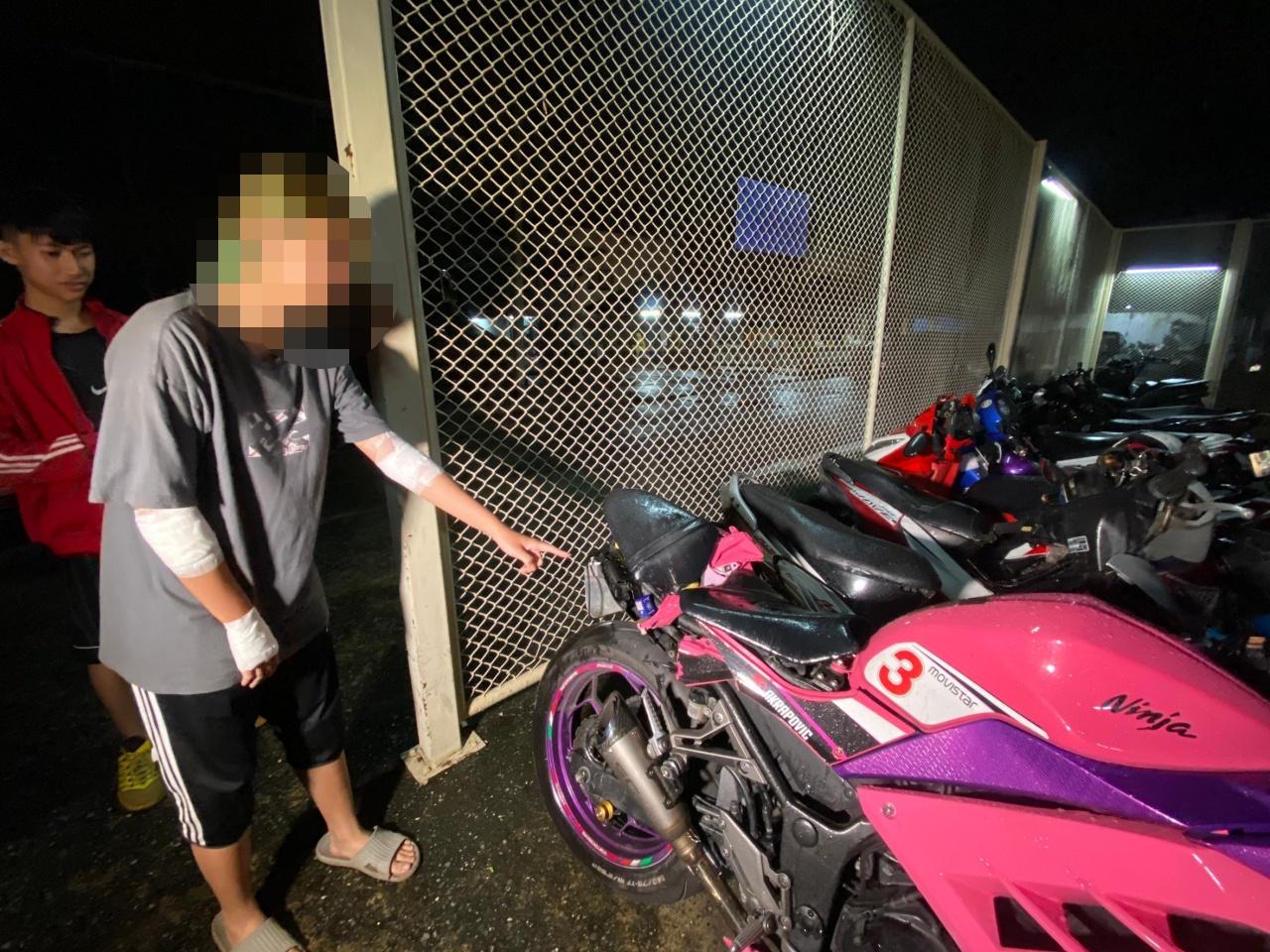 ใกล้กันเป็นรถยี่ห้อคาวาซากิ รุ่นนินจา สีชมพู หมายเลขทะเบียน 3 กว 129 กรุงเทพมหานคร ช่วงท้ายรถถูกเฉี่ยวชนจนพังยับเยิน ส่วนผู้บาดเจ็บเป็นวัยรุ่นหญิง 2 ราย คือผู้ขับขี่รถคันแรกทราบชื่อ น.ส.เวชีนี นวลเนตร อายุ 19 ปี มีบาดแผลถลอกที่ข้อศอกซ้าย และผู้ขับขี่รถคันที่สองชื่อ น.ส.เนะเนะ โตชิฮีโร อายุ 17 ปี สาวลูกครึ่งไทย-ญี่ปุ่น และเป็นผู้สมัครเข้าประกวด Mister and missteen Thailand 2020 สภาพตามร่างกายมีบาดแผลถลอกที่ข้อศอกทั้ง 2 ข้างและข้อมือขวา เจ้าหน้าที่จึงปฐมพยาบาลเบื้องต้นก่อนส่งตัวไปโรงพยาบาลใกล้เคียงเพื่อตรวจร่างกายอย่างละเอียดอีกครั้ง