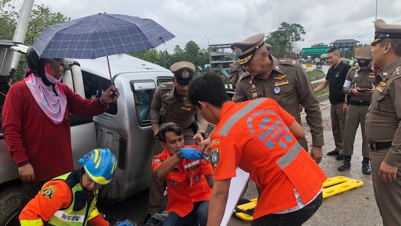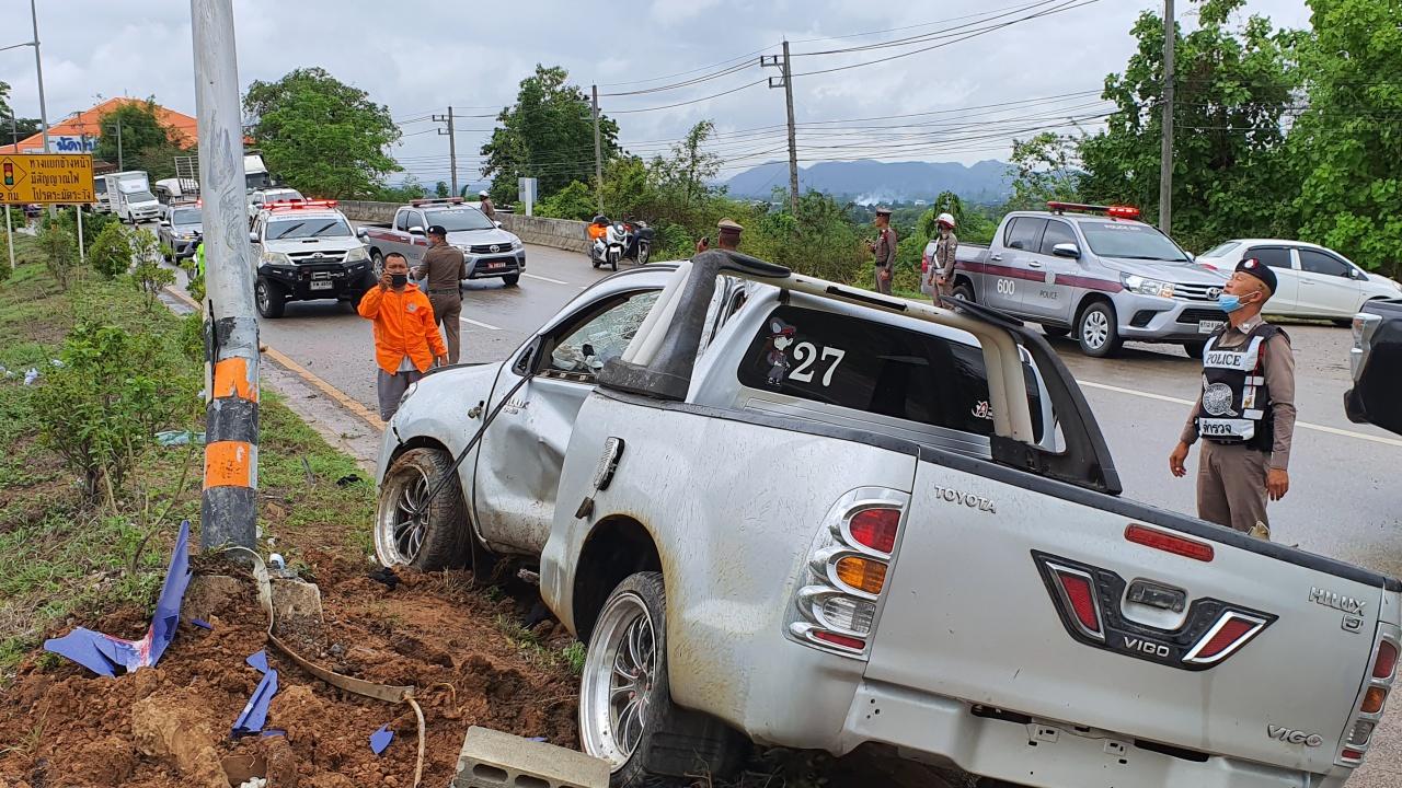 “บิ๊กหนุ่ม” พล.ต.ต.อภิชาติ ศิริสิทธิ์ ผบช.ภ.6 สั่งหยุดขบวน จอดช่วย ด.ต.ตำแหน่ง ผบ.หมู่(ป.) สภ.วังเจ้า หลังขับปิกอัพวูบ แหกโค้งชนเสาไฟฟ้า อาการสาหัสเป็น-ตายเท่ากัน