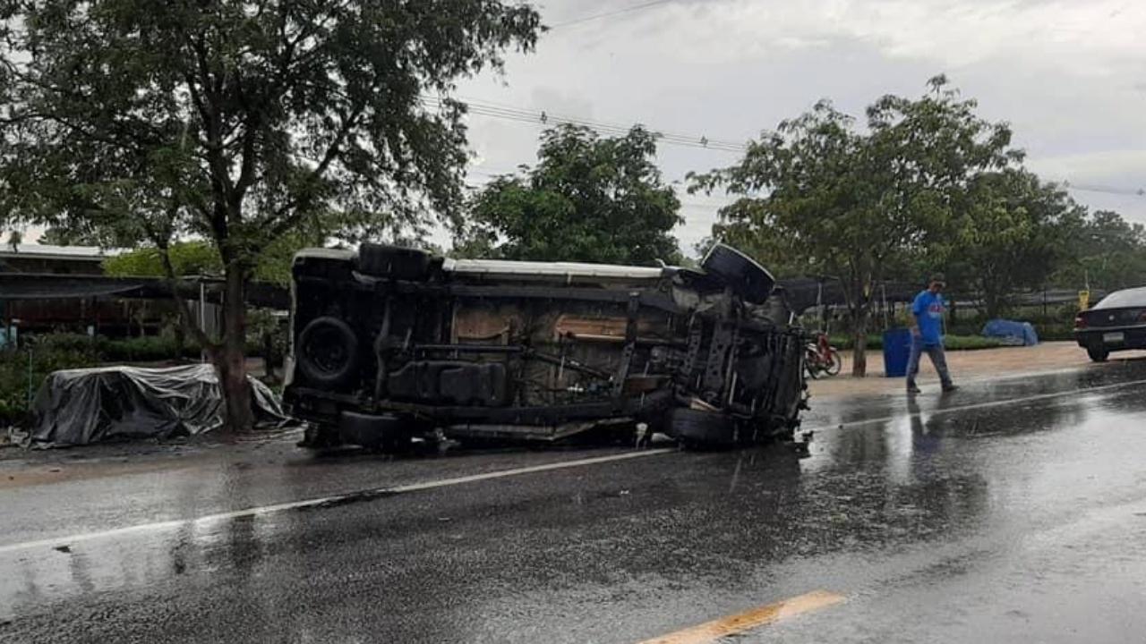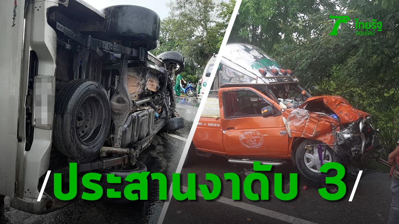 อุบัติเหตุบนถนนสายคลองแม่ลาย - คลองลาน เมืองกำแพงเพชร เมื่อรถกระบะซิ่งฝ่าฝน พุ่งชนประสานงารถสองแถวที่มีผู้โดยสารนั่งมา เป็นเหตุให้มีผู้เสียชีวิต 3 ราย บาดเจ็บสาหัสอีก 1 ราย