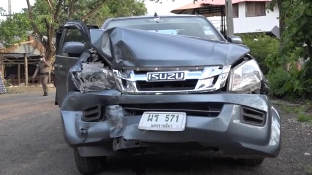 โดยรถกระบะคันดังกล่าว มีพลเมืองดีแจ้งว่าขับขี่หลบหนีมาจอดหลบซ่อนอยู่ในร้านจำหน่ายเครื่องปั้นดินเผาตลาดด่านเกวียน หลังก่อเหตุพุ่งชนท้ายรถคู่กรณี เป็นกระบะ 4 ประตู สีบรอนซ์ หมายเลขทะเบียน นค 9904 นครราชสีมา จนกระเด็นอัดก๊อบปี้ต้นไม้เกาะกลางถนน 4 เลน สายราชสีมา-โชคชัย กม.23 เลยแยกไฟแดงเสาเดียว ต.ท่าอ่าง อ.โชคชัย จ.นครราชสีมา ทำให้คนขับชื่อ นายสุชาติ ทองประเสริฐ อายุ 31 ปี อาชีพช่างปูน คอหักเสียชีวิตคาที่