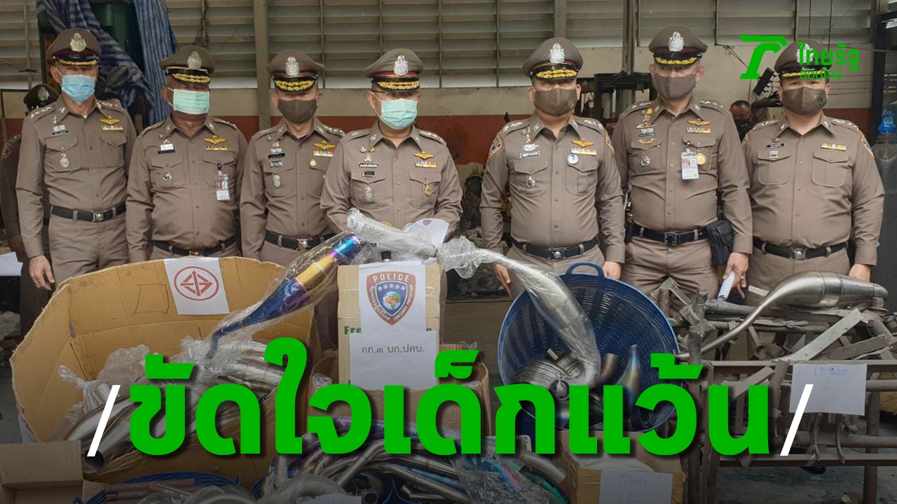 “บิ๊กเด่น” พล.ต.ท.ดำรงศักดิ์ กิตติประภัสร์ ผู้ช่วย ผบ.ตร. ทลายโรงงานท่อไอเสียรถจักรยานยนต์ไม่ได้มาตรฐาน ส่งขายร้านแต่งซิ่งตามออเดอร์ ยึดของกลางเพียบ เตือนผู้ปกครองถอยรถให้แว้น มีความผิดด้วย