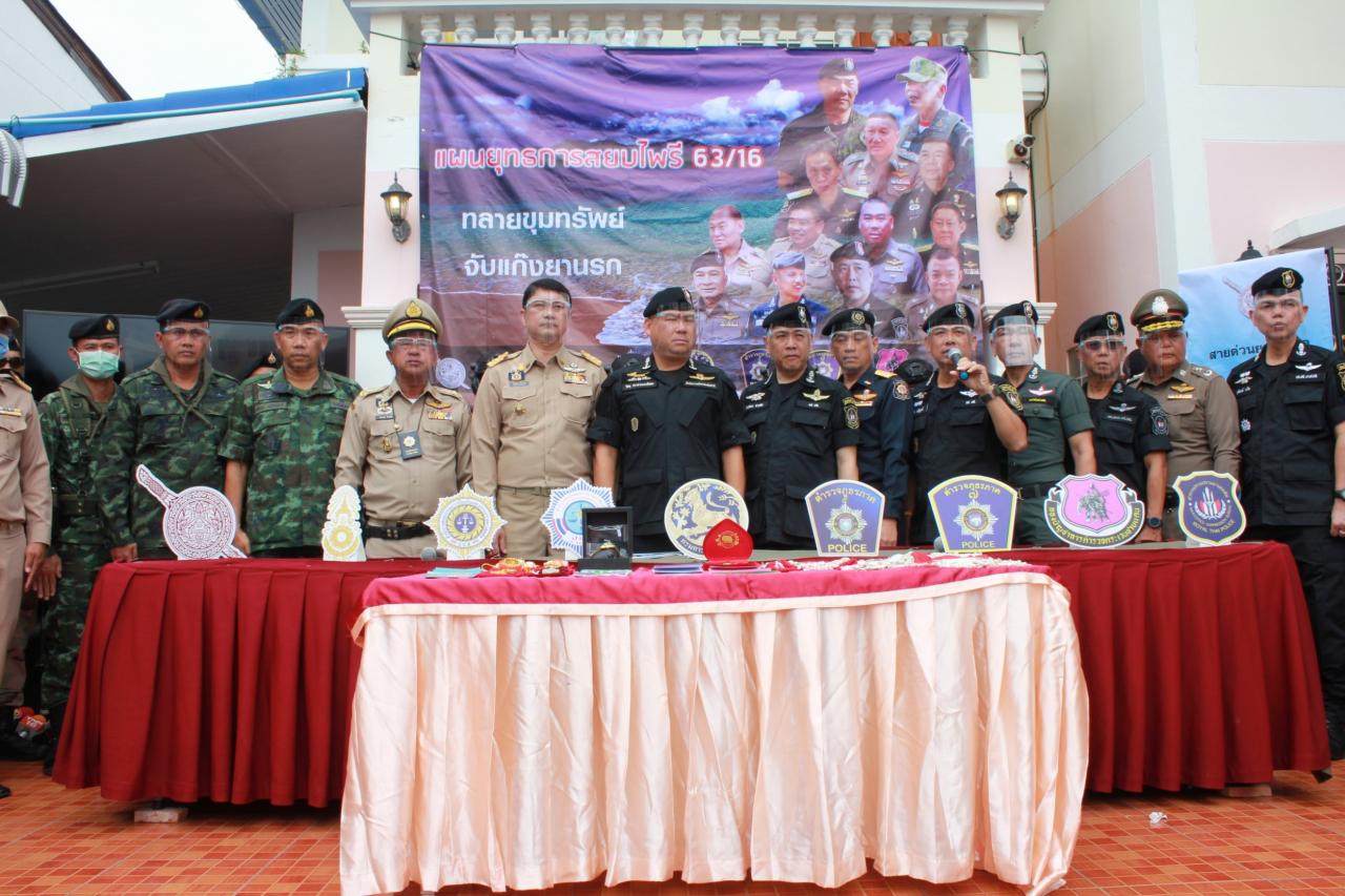 ปส.-ตร.ประจวบฯ โชว์ผลงาน เปิดยุทธการสยบไพรี ทลายขุมทรัพย์ จับแก๊งยานรกที่หัวหิน ได้ผู้ต้องหา 5 ราย ยาบ้า 5 ล้านเม็ด หลังวางแผนจับพร้อมกัน 30 จุด ขยายผลใน 4 จังหวัด ยึดของกลางกว่า 200 ล้าน