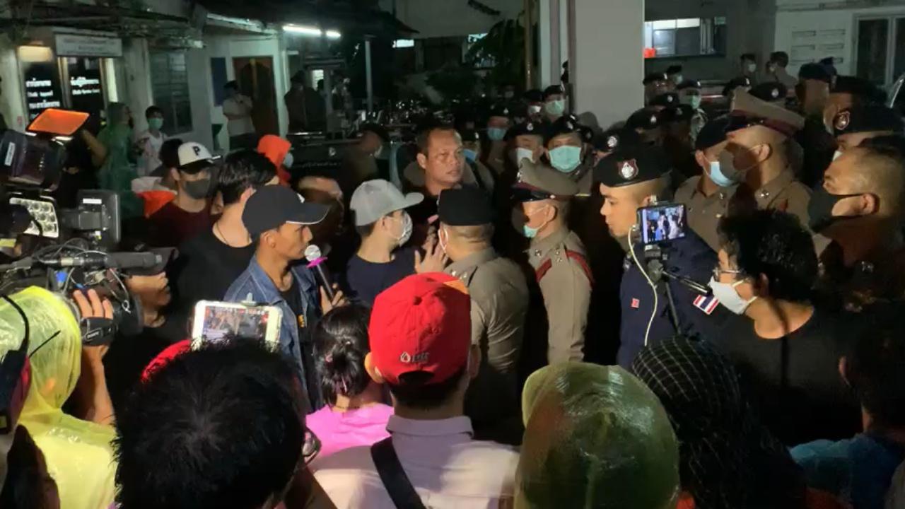 ทั้งนี้ตลอดการชุมนุมเป็นไปด้วยความเรียบร้อย มีแกนนำพูดผ่านเครื่องขยายเสียง เพื่อเรียกร้องขอให้ตำรวจปล่อยตัวเพนกวิน กระทั่งช่วงเวลาประมาณ 23.00 น. นายภาณุพงศ์ หรือไมค์ ระยอง ได้ประกาศขอความร่วมมือจากตำรวจเพื่อขอพื้นที่บริเวณใต้อาคาร สน.สำราญราษฎร์ ให้กลุ่มนักศึกษาและประชาชนได้เข้าไปหลบฝน แต่ก็ยังไม่มีการตอบรับจากทางเจ้าหน้าที่ตำรวจ ทำให้กลุ่มผู้ชุมนุมพยายามเข้าไปยังบริเวณใต้อาคาร ทำให้เกิดชุลมุนกันเล็กน้อย ซึ่งต่อมาทางเจ้าหน้าที่ก็อนุญาตให้เข้าไปใช้พื้นที่ได้บางส่วน