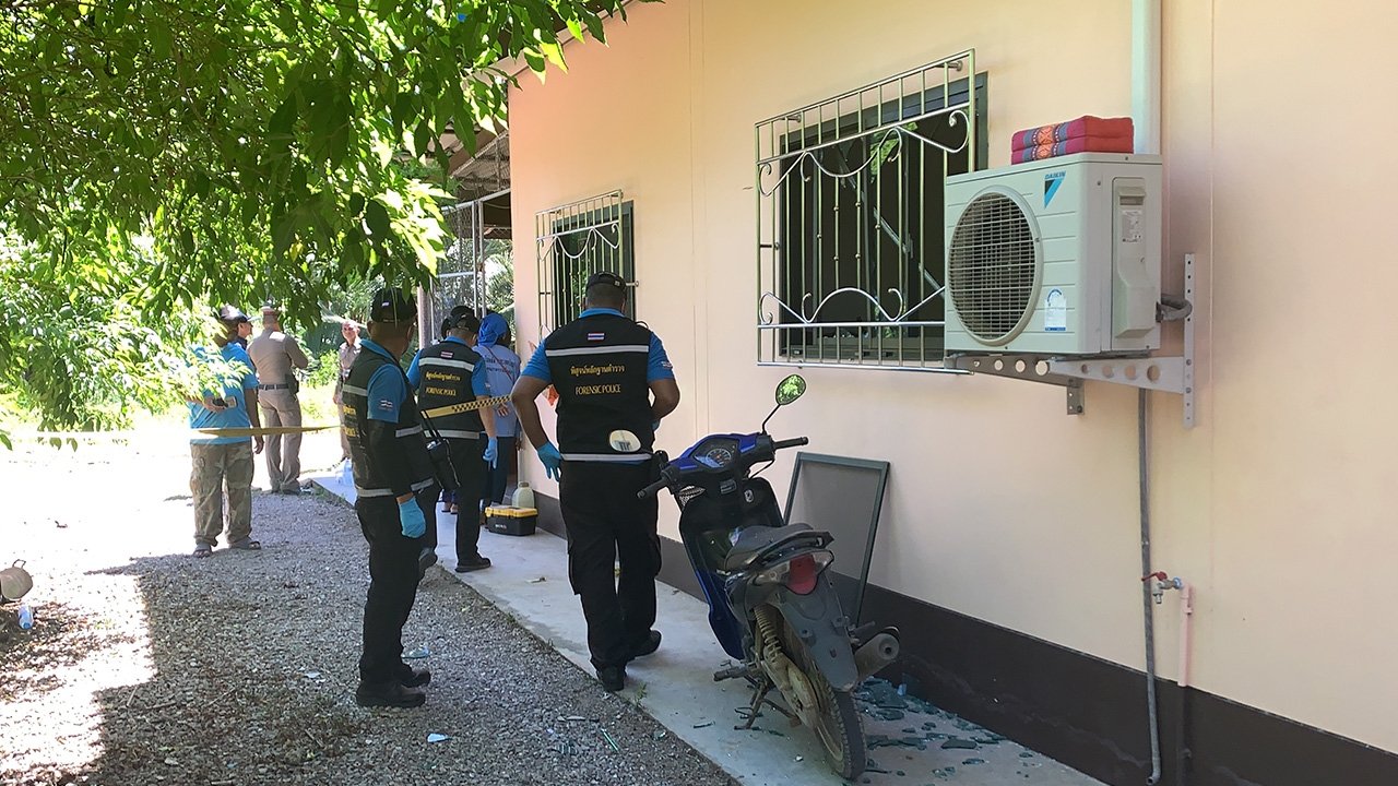 บ้านที่เกิดเหตุเป็นของ นายเสริม ชุนเชย อายุ 68 ปี เป็นสมาชิกองค์การบริหารส่วนตำบลร่อนทอง ซึ่งได้รับบาดเจ็บมีร่องรอยคล้ายโดนสะเก็ดระเบิดหลายจุด ญาตินำส่งโรงพยาบาลบางสะพานไปแล้วก่อนหน้านี้ ซึ่งพบเศษกระจก และหน้าต่างมุ้งลวดเสียหายพังออกมาด้านนอก ซึ่งเป็นบริเวณห้องนอนของผู้บาดเจ็บ ภายในห้องนอนได้รับความเสียหายจากแรงระเบิด ฝ้าหลังคาหล่นลงมากอง พบรูพรุนจำนวนมากกระจายขึ้นทะลุหลังคา กำแพงอีกด้านของห้องถูกแรงระเบิดทะลุพังเสียหาย เจ้าหน้าที่ชุด EOD และชุดพิสูจน์หลักฐาน เข้าตรวจสอบที่เกิดเหตุอย่างละเอียด พร้อมกันผู้ไม่เกี่ยวข้องออกนอกบริเวณบ้าน