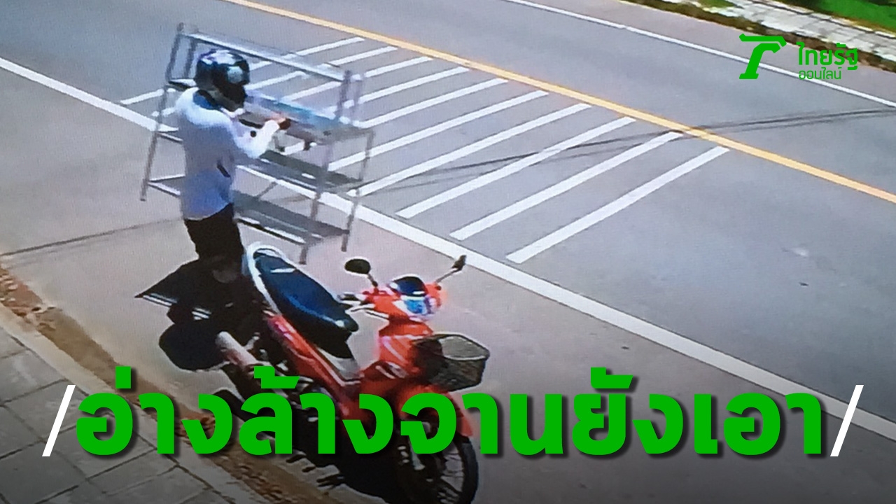 โดยภาพในกล้องวงจรปิด พบว่ามีชายไทยสวมหมวกกันน็อกปกปิดใบหน้า สวมเสื้อยืดแขนยาวสีขาว กางเกงขาสั้น ขี่รถจักรยานยนต์ ยี่ห้อฮอนด้าเวฟ สีแดง ไม่ทราบหมายเลขทะเบียน มาจอดที่หน้าร้าน แล้วเข้ามาขโมยเอาอ่างล้างจานไป โดยคนร้ายถือไปแบบไม่เกรงกลัว เหตุเกิดช่วงเที่ยงของวันที่ 29 ส.ค.ที่ผ่านมา โดยคลิปดังกล่าวภายหลังมีการโพสต์ผ่านโซเชียล ทำให้มีผู้คนเข้ามาแสดงความเห็นว่า ทุกวันนี้เริ่มหาความปลอดภัยในชีวิตและทรัพย์สินไม่ได้แล้ว แม้แต่อ่างล้างจานก็ยังถูกขโมย