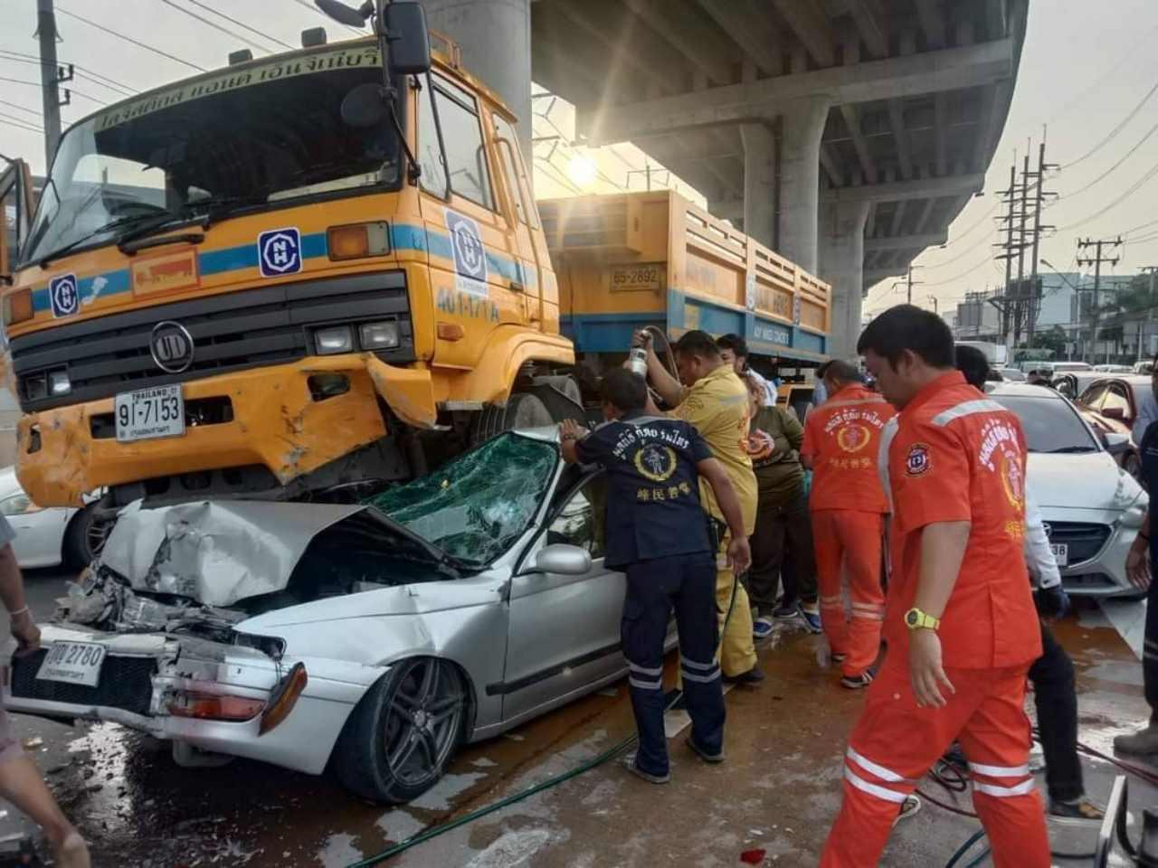 เวลา 06.20 น. วันที่ 23 ก.ย. ร.ต.อ.วันชาติ เหล่ากอปิกิจ รอง สว.(สอบสวน) สน.มีนบุรี รับแจ้งอุบัติเหตุรถบรรทุกหินชนรถยนต์ 6 คัน มีผู้เสียชีวิตและบาดเจ็บบริเวณสามแยกการไฟฟ้ามีนบุรี ถนนสุวินทวงศ์ แขวงและเขตมีนบุรี กรุงเทพฯ จึงเร่งประสานอุปกรณ์ตัดถ่างมูลนิธิร่มไทร เข้าตรวจสอบ