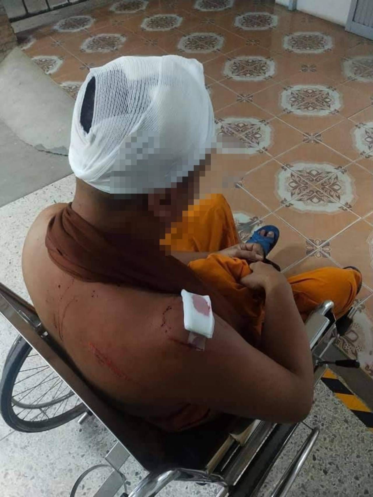 ด้าน พระประวัติ พระสงฆ์ที่ถูกทำร้ายบาดเจ็บ กล่าวว่า ก่อนเกิดเหตุได้ยินเสียงจักรยานยนต์ขี่มาจอดใกล้กุฏิ ก่อนจะได้ยินเสียงมีดฟันพังประตูเข้ามาทำร้าย โดยใช้มีดอีโต้ฟันเข้าที่ศีรษะและหัวไหล่ โดยอาตมาก็พยายามต่อสู้โดยใช้มือดันผู้ต้องหาชิดฝาผนัง จนสู้แรงไม่ไหว ผู้ต้องหาเลยบอกให้ปล่อย จะไม่ทำอะไรแล้ว ผู้ต้องหาได้ขี่จักรยานยนต์หลบหนีไป ตนจึงรีบไปดูพระณฐกรก็พบว่าเสียชีวิตแล้ว จึงประสานชาวบ้านและเจ้าหน้าที่เข้าช่วยเหลือ