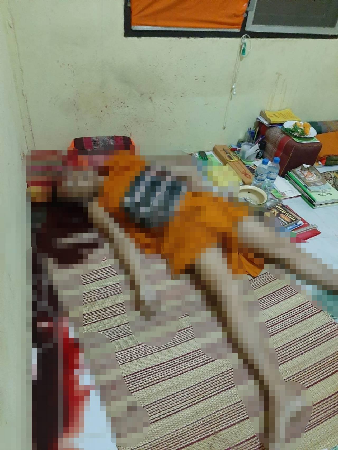 กรณีเมื่อเวลา 21.30 น. วันที่ 23 ก.ย.63 พ.ต.ท.คูณทวี วันทะไชย สว.(สอบสวน) สภ.เมืองสรวง ได้รับแจ้งเหตุทำร้ายร่างกายมีผู้เสียชีวิตในกุฏิ ในวัดกกกุงวราราม ม.1 ต.กกกุง อ.เมืองสรวง จ.ร้อยเอ็ด พบศพพระณฐกร ดีทองหลาง อายุ 34 ปี พระลูกวัด นอนหงายอยู่บนที่นอนภายในห้อง ตรวจสอบพบบาดแผลถูกฟันด้วยของมีคมเป็นแผลยาวจากบริเวณโพรงจมูกถึงกลางศีรษะด้านบน และต้นคอข้างซ้ายเป็นแผลฉกรรจ์หวิดขาด เลือดไหลนองเต็มพื้นห้อง เสียชีวิตในจุดเกิดเหตุ เจ้าหน้าที่จึงทำการชันสูตรพลิกศพก่อนมอบให้ญาติรับดำเนินการต่อไป นอกจากนี้ยังพบพระได้รับบาดเจ็บอีก 1 รูป มีแผลถูกฟันบริเวณศีรษะและหัวไหล่ด้านขวา ทราบชื่อว่าพระประวัติ กุลนา อายุ 36 ปี