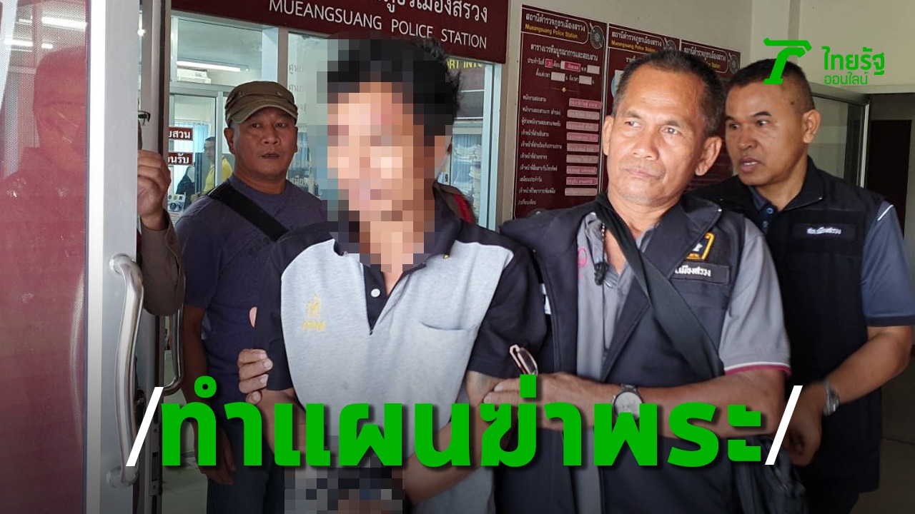 ตำรวจ สภ.เมืองสรวง คุมตัวหนุ่มขี้ยาอายุ 37 ปีไปทำแผนฯที่วัดกกกุงวราราม จ.ร้อยเอ็ด หลังเอามีดฟันศีรษะพระลูกวัดมรณภาพคากุฏิ 1 รูป และเจ็บอีก 1 รูป สารภาพโมโหขอเงินพระเพื่อไปซื้อยาบ้าแล้วไม่ได้