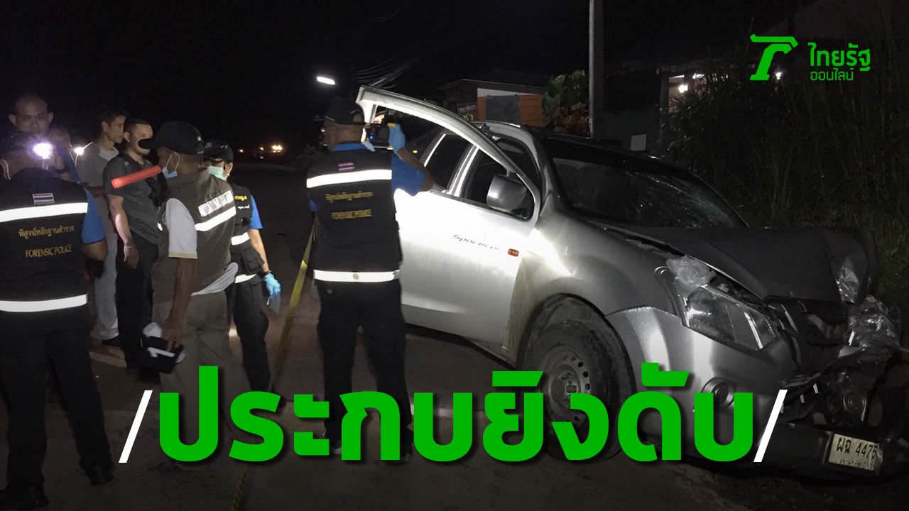 มือปืนขับรถประกบ จอดเคลียร์เสี่ยรับเหมา สบโอกาสทีเผลอ จ่อยิงเผาขน กระสุนเข้าคอทะลุแก้มซ้าย เสี่ยตกใจเร่งเครื่องรถหนี พุ่งเสยท้ายกระบะตกข้างทาง ก่อนไปตายที่ รพ. ตำรวจพบรถ 3 คันต้องสงสัย ส่งชุดสืบเร่งไล่ล่า พุ่งปมขัดแย้งชาวบ้านในพื้นที่ และประมูลธุรกิจก่อสร้าง ผบ.ตร.จี้คลี่คลายคดี เพราะผู้ตายเป็นผู้รับเหมารายใหญ่