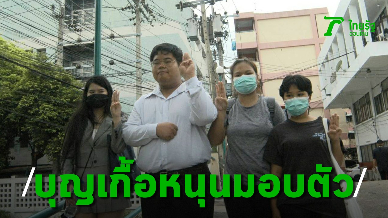 บุญเกื้อหนุน พร้อมทนายความมอบตัว เดินทางมามอบตัวที่ สน.ดุสิต ตามหมายจับ ม.110 ก่อนจะชู 3 นิ้วหน้าโรงพัก ด้าน "เอกชัย" ถูกล็อกตัวมาถึง สน.ลาดพร้าว เพื่อบันทึกการจับกุมรอส่งตัวไป ตชด.ภ.1