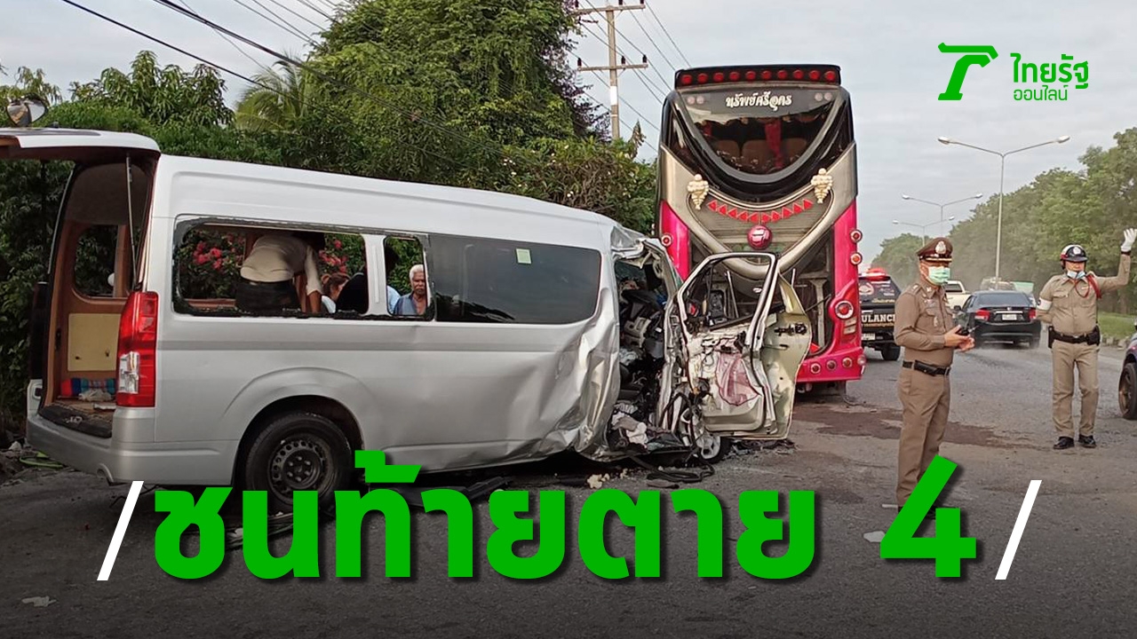 อุบัติเหตุบนถนนสายรังสิต-นครนายก จุดยูเทิร์น บ้านหนองบัวตาโต้ ต.บ้านพร้าว ขาเข้า อ.องครักษ์ รถตู้คณะปี่พาทย์พุ่งชนท้ายรถบัส ตาย 4 บาดเจ็บ 3