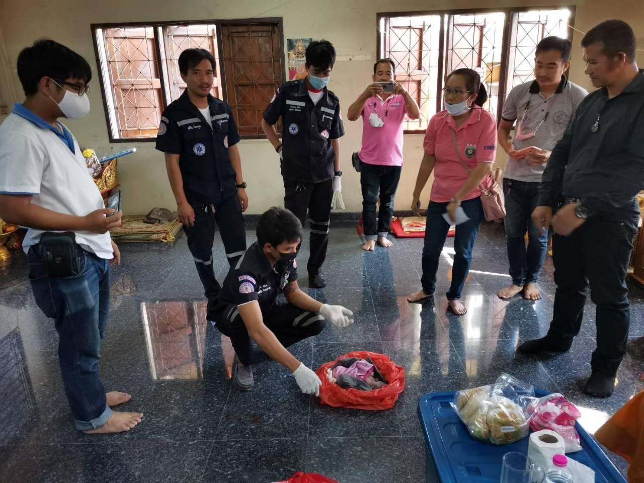 ผู้ช่วยเจ้าอาวาสวัดไตรสามัคคี กล่าวต่อว่า ขณะที่หญิงคนดังกล่าวกำลังออกไปซื้อของอยู่นั้น มีลูกศิษย์และชาวบ้านมาวิพากษ์วิจารณ์ว่า จะเผาศพเด็กโดยไม่มีที่มาที่ไปไม่ได้ ทำให้ตนไม่สบายใจ จึงตัดสินใจให้ลูกศิษย์วัดเดินไปตามเจ้าหน้าที่ตำรวจที่ป้อมตำรวจมาตรวจสอบ พร้อมประสานเจ้าหน้าที่มูลนิธิฯ มารับศพไปชันสูตรตามกฎหมาย แต่จากการสังเกตพฤติกรรมของหญิงสาวรายนี้ ไม่น่าจะมีพฤติการณ์อำพรางซ่อนเร้นศพ แต่น่าจะทำไปเพราะไม่รู้ขั้นตอนกฎหมายมากกว่า