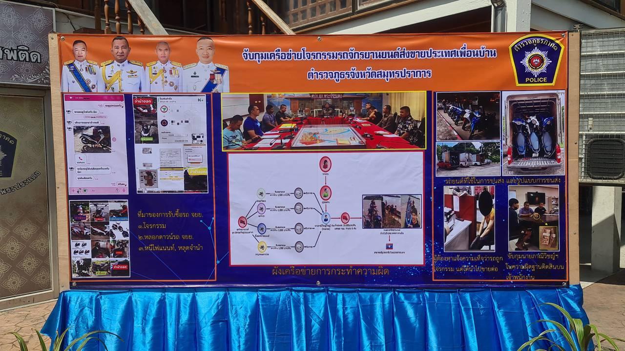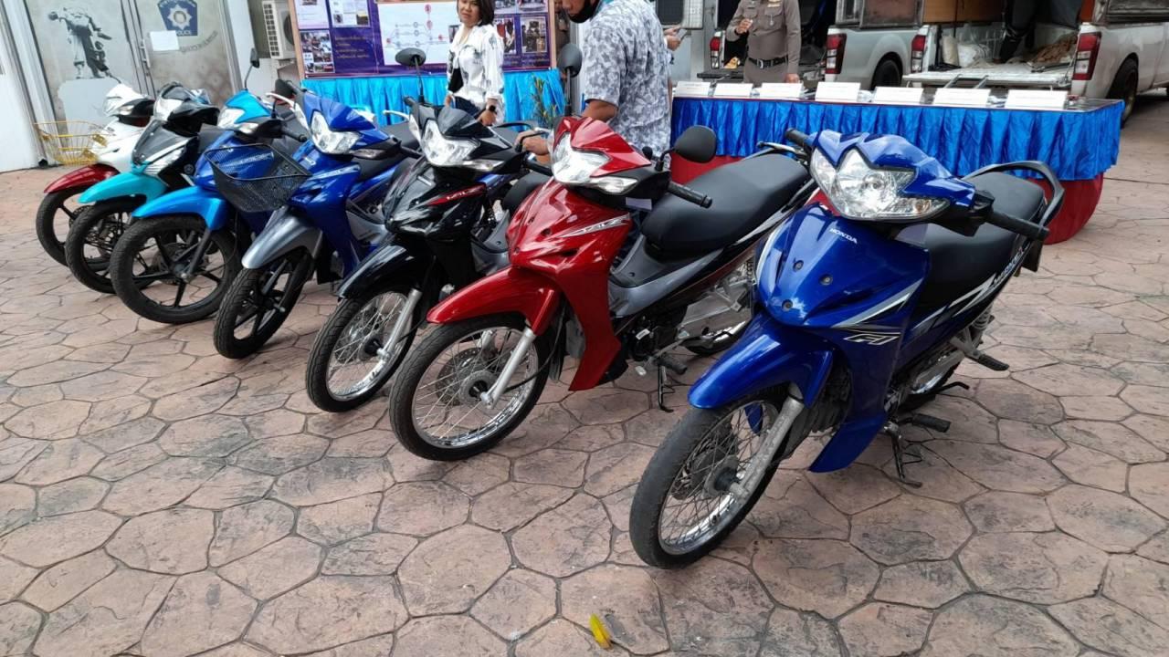 ตำรวจรวบแก๊งลักรถ จยย.ส่งขายออกเพื่อนบ้าน ยึดของกลางเกือบ 20 คันที่ย่านพระประแดง ได้ผู้ต้องหา 2 รายข้อหาแจ้งความเท็จเอา จยย.ไปขายแล้วแจ้งความว่ารถหาย และอีกรายพยายามติดสินบน จนท.แลกปล่อยตัว
