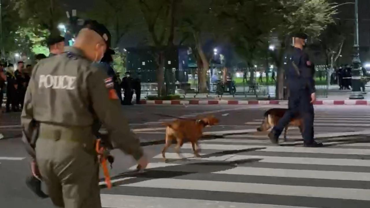 ต่อมาเวลา 22.30 น. หน่วยเก็บกู้เเละตรวจสอบวัตถุระเบิด หรือ EOD พร้อมสุนัขตำรวจเข้าปฏิบัติการตรวจหาวัตถุต้องสงสัยพื้นที่โดยรอบท้องสนามหลวงโดยจากการตรวจสอบไม่พบวัตถุต้องสงสัย ขณะเดียวกัน เจ้าหน้าที่สำนักงานเขตพระนคร เข้าทำความสะอาดโดยเก็บขยะที่ยังหลงเหลือ พร้อมฉีดน้ำล้างถนนตั้งแต่หน้าศาลฎีกา ถนนราชดำเนินใน ไปจนถึงหน้าโรงเเรมรัตนโกสินทร์
