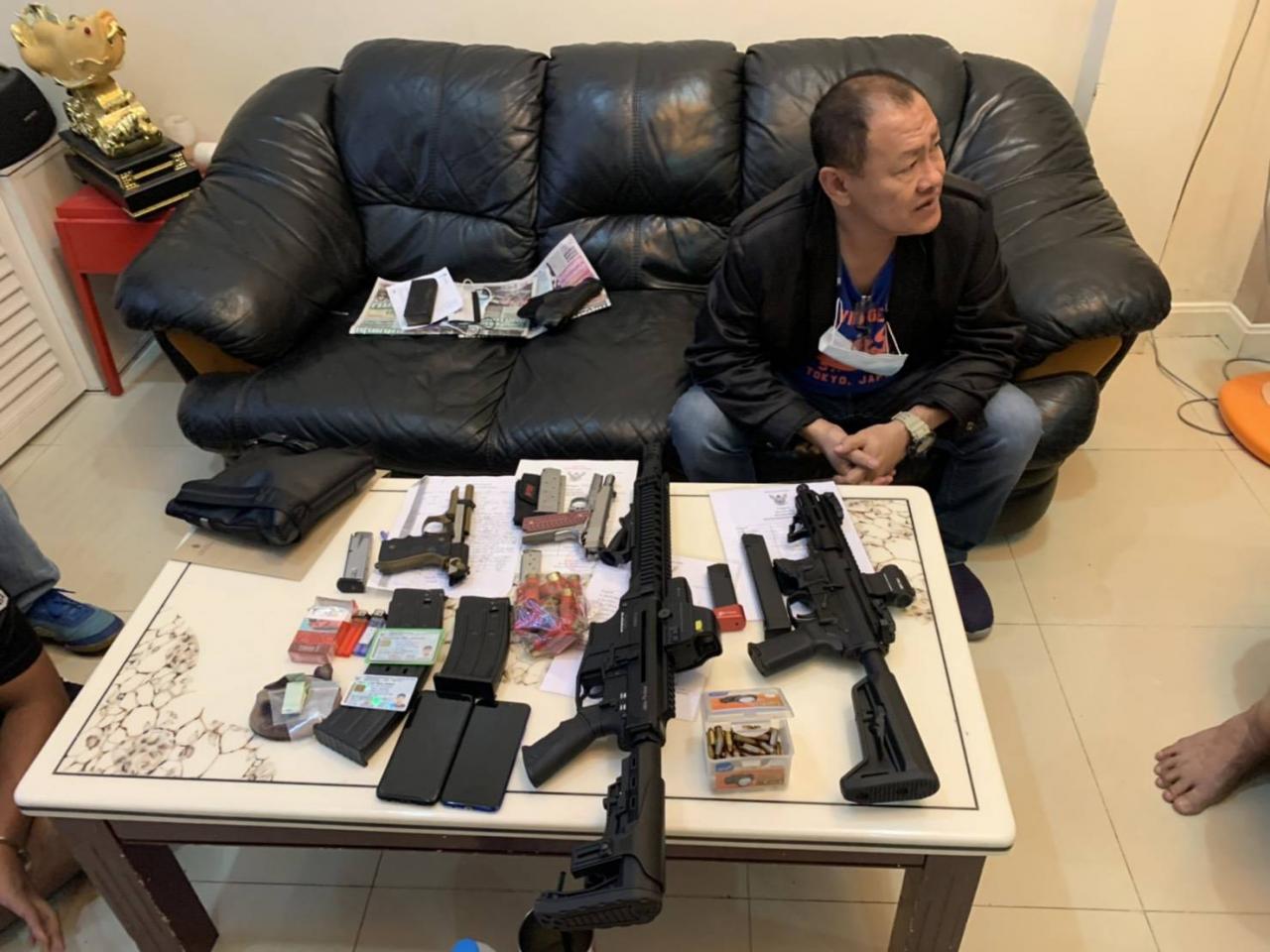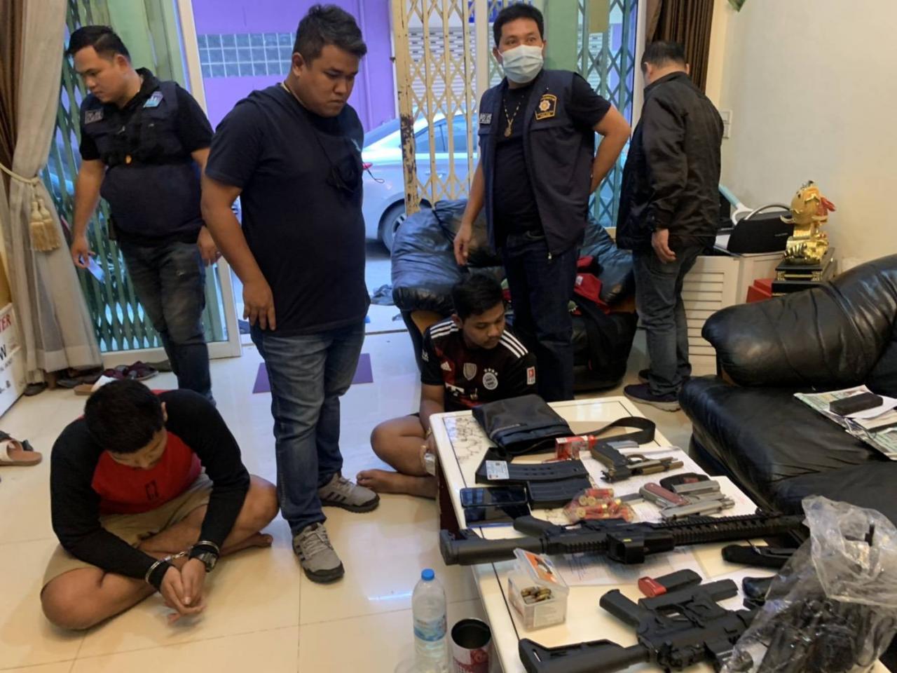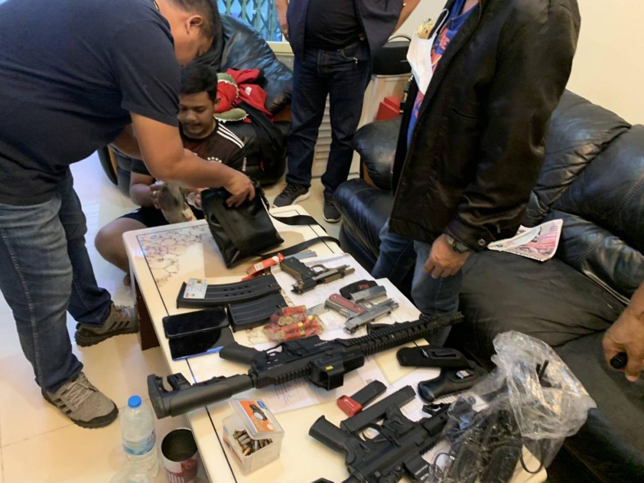 โดยบ้านดังกล่าวเป็นตึกแถวสูง 4 ชั้น เบื้องต้นไม่พบว่า นายธนบดี อาศัยอยู่ในบ้าน จากการตรวจสอบพบอาวุธปืน 9 มม. จำนวน 2 กระบอก อาวุธปืน 11 มม. จำนวน 1 กระบอก และอาวุธปืนลูกซองยาวหุ่นสงคราม 1 กระบอก รวมทั้งสิ้น 4 กระบอก พร้อมกระสุนปืนขนาด 9 มม. รวม 67 นัด และกระสุนปืนลูกซอง อีก 15 นัด โดยในบ้านพักพบผู้อาศัยชื่อ นายวรัตน์ หรือ ก๊อต วงศ์เพ็ชรเขียว อายุ 21 ปี ถูกจับกุมพร้อมของกลาง ยาเคในธนบัตร 20 บาท น้ำหนัก 1.13 กรัม ยาเคชนิดเกล็ด 1 ถุงหนัก 1.22 กรัม ยาไฟต์ไฟต์ครึ่งเม็ด ซึ่งในเบื้องต้นจะทำการบันทึกจับกุมที่ สน.บางยี่ขัน ก่อนที่ พล.ต.ท.ภัคพงษ์ พงศ์เภตรา ผบช.น.จะเดินทางไปแถลงข่าวผลการตรวจค้นบ้านพักของกลุ่มผู้ต้องสงสัย ที่ สน.ภาษีเจริญ ต่อไป.