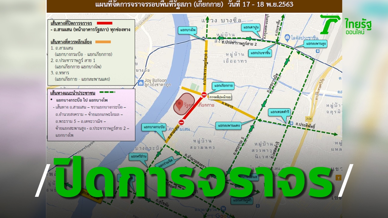 ตามที่ปรากฏทางสื่อโซเชียลมีเดีย กรณีมีการประกาศนัดชุมนุมของหลากหลายกลุ่ม บริเวณหน้ารัฐสภา (เกียกกาย) ในวันที่ 17 พฤศจิกายน 2563 พลตำรวจตรีจิรสันต์ แก้วแสงเอก รองผู้บัญชาการตำรวจนครบาล แนะนำให้ประชาชนหลีกเลี่ยงเส้นทาง ตั้งแต่เวลา 06.00 น. เป็นต้นไป จนเสร็จสิ้นการชุมนุม ในเส้นทางถนนสามเสน (หน้าอาคารรัฐสภา) ทุกช่องทาง