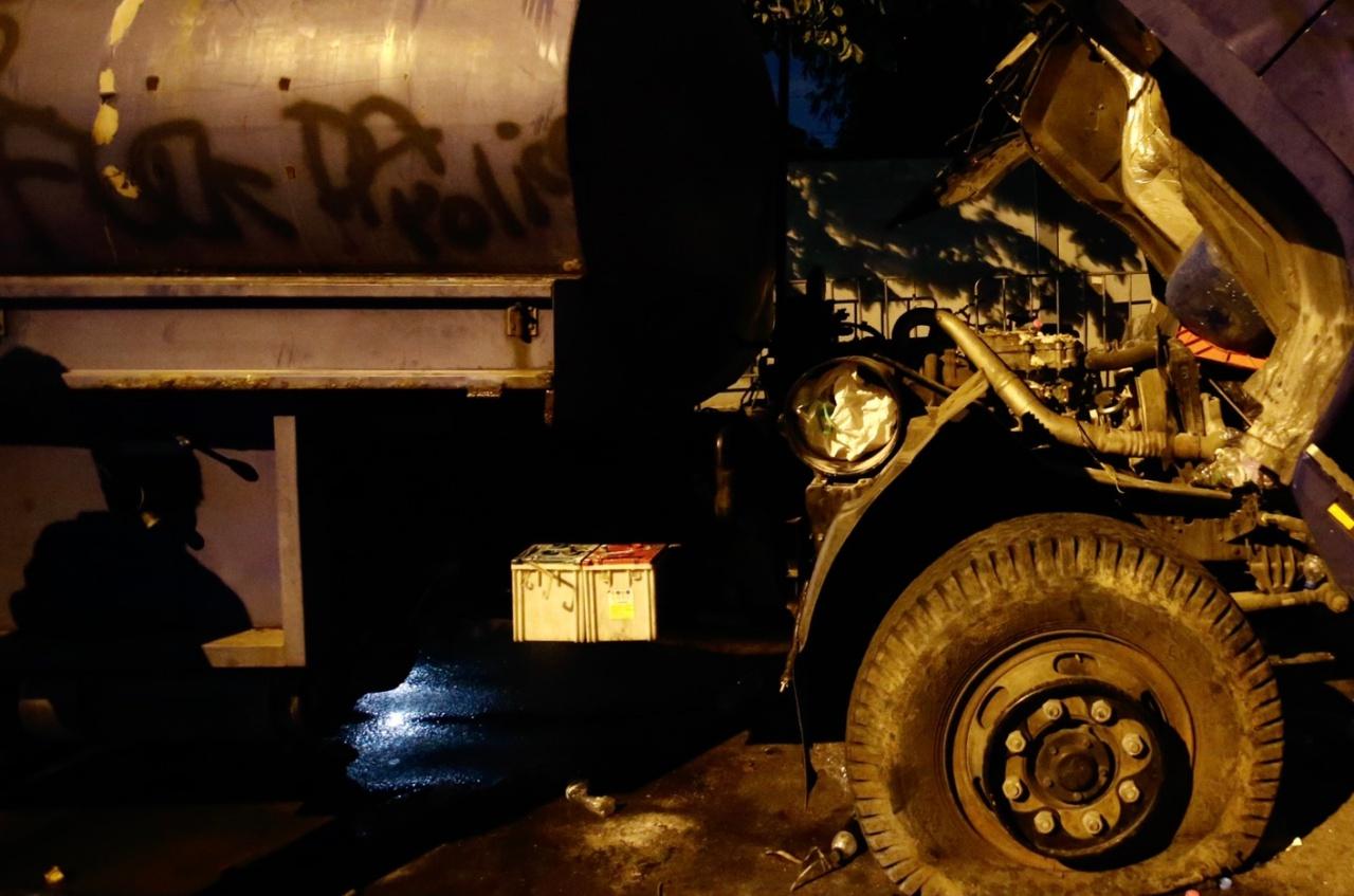 บรรยากาศบริเวณแยกเกียกกาย ตั้งแต่ถนนทหาร ถนนสามเสน จนถึงแยกบางกระบือ หลังจากกลุ่มราษฎรได้ประกาศยุติการชุมนุม พบ “รถฉีดน้ำแรงดันสูง” หรือที่เรียกกันว่า “จีโน่” นำเข้ามาจากเกาหลีใต้ ในราคาคันละ 25 ล้าน ถูกพ่นสีสเปรย์ด้วยข้อความต่างๆ