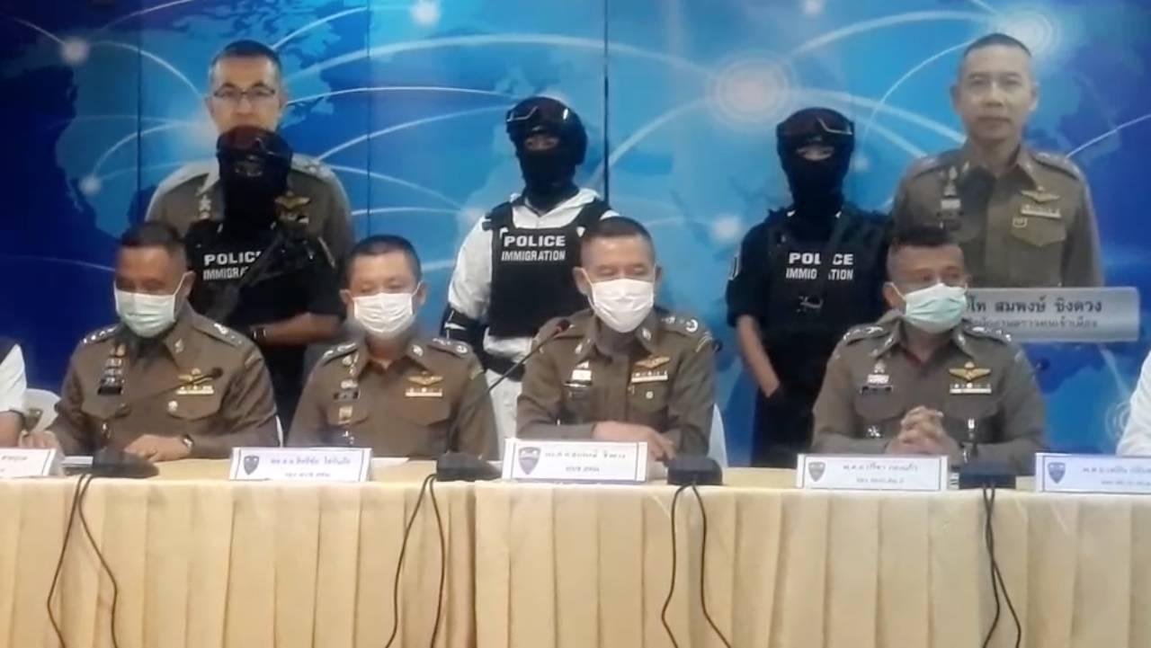 เมื่อวันที่ 18 พ.ย.63 พล.ต.ท.สมพงษ์ ชิงดวง ผบช.สตม. พร้อมด้วย พล.ต.ต.สิทธิชัย โล่กันภัย รอง ผบช.สตม., พล.ต.ต.ศิลปคมณ์ เอี่ยมวงศ์ รอง ผบช.สตม., พล.ต.ต.วีรพล เจริญศิริ ผบก.ตม.2, พ.ต.อ.ปรีชา กองแก้ว รอง ผบก.ตม.2 และ พ.ต.อ.เพลิน กลิ่นพยอม ผกก.กก.สส.ปป.บก.ตม.2 พร้อมชุดสืบสวนฯ ร่วมแถลงข่าวการจับกุมคนร้าย ดังนี้