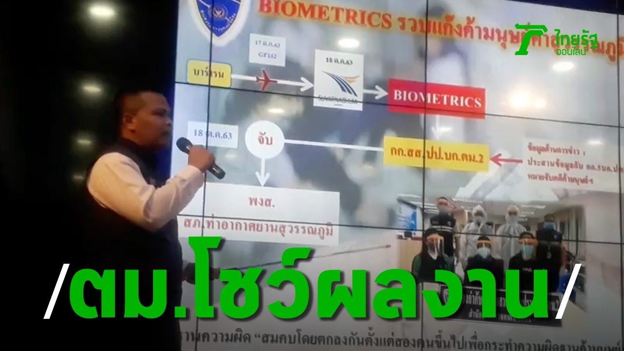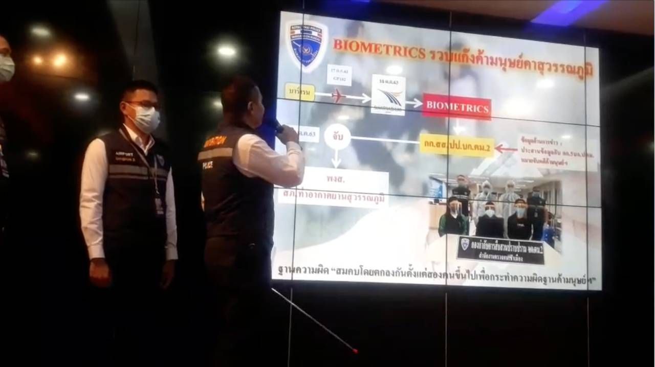 ตม.แถลงระบบไบโอเมทริกซ์โชว์ผลงาน นำจับ 2 คนไทยผู้ต้องหาเครือข่ายแก๊งค้ามนุษย์คาสนามบิน ขณะที่พบแรงไทยลักลอบขนยาไอซ์กว่า 4.1 กก.ขณะเตรียมเดินทางไปอิสราเอล และคดี 2 ชาวมาเลย์ลอบเข้าไทย