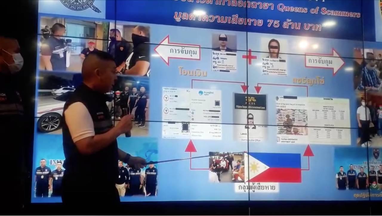 ตม.1 จับสาวตากาล็อก ฉายา Queens of Scammers และสาวไทยวัย 22 ปี คาอาคารย่านอโศก คดีฉ้อโกงประชาชน หลอกลงทุนธุรกิจปล่อยเงินกู้รูปแบบแชร์ลูกโซ่ สร้างมูลค่าความเสียหาย 75 ล้านบาท