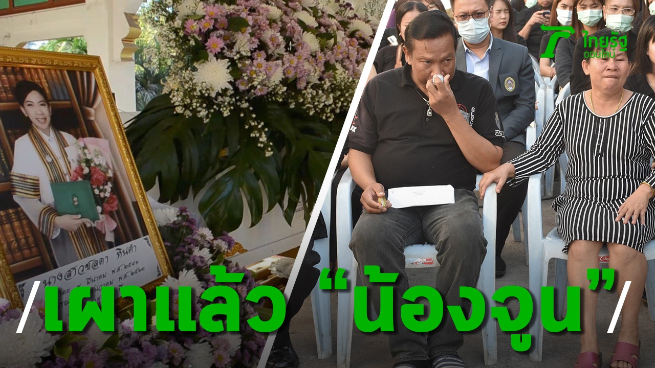 เผาแล้ว “น้องจูน” นักศึกษาชั้นปีที่ 4 มหาวิทยาลัยราชภัฏอุดรธานี เหยื่อไอ้คลั่งใช้มีดไล่แทงมั่ว พ่อแม่นั่งร่ำไห้น้ำตาท่วม โดยมีญาติและเพื่อนๆ คอยปลอบใจอยู่ไม่ห่าง