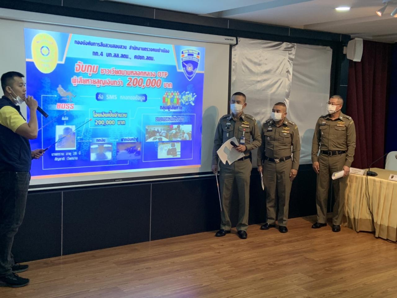 ผบช.สตม.แถลงจับกุมคนไทย-ต่างชาติ ร่วมกันตุ๋นโอนเงินค่าธรรมเนียมส่งพัสดุ เสียหาย 1.2 ล้านบาท ผ่านทางแอปพลิเคชันไลน์