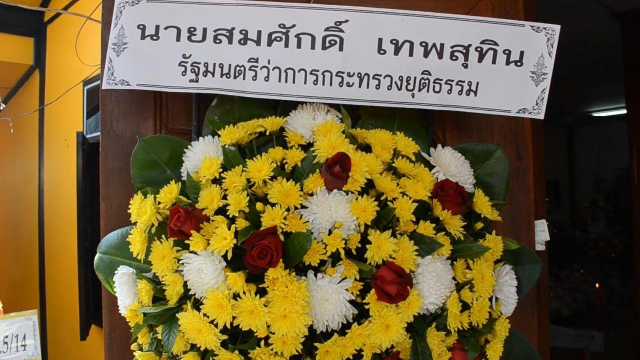 ผู้สื่อข่าวรายงานเพิ่มเติมว่า นอกจากจะมีพวงหรีดจากผู้ว่าราชการจังหวัดอุดรธานี หน่วยงานราชการในจังหวัดอุดรธานี ผู้แทนราษฎร นักการเมืองท้องถิ่น เพื่อนร่วมชั้น และโรงเรียนอุดรพิทยานุกูล แล้ว ยังมีพวงหรีดจาก นายสมศักดิ์ เทพสุทิน รัฐมนตรีว่าการกระทรวงยุติธรรม รวมอยู่ด้วย.