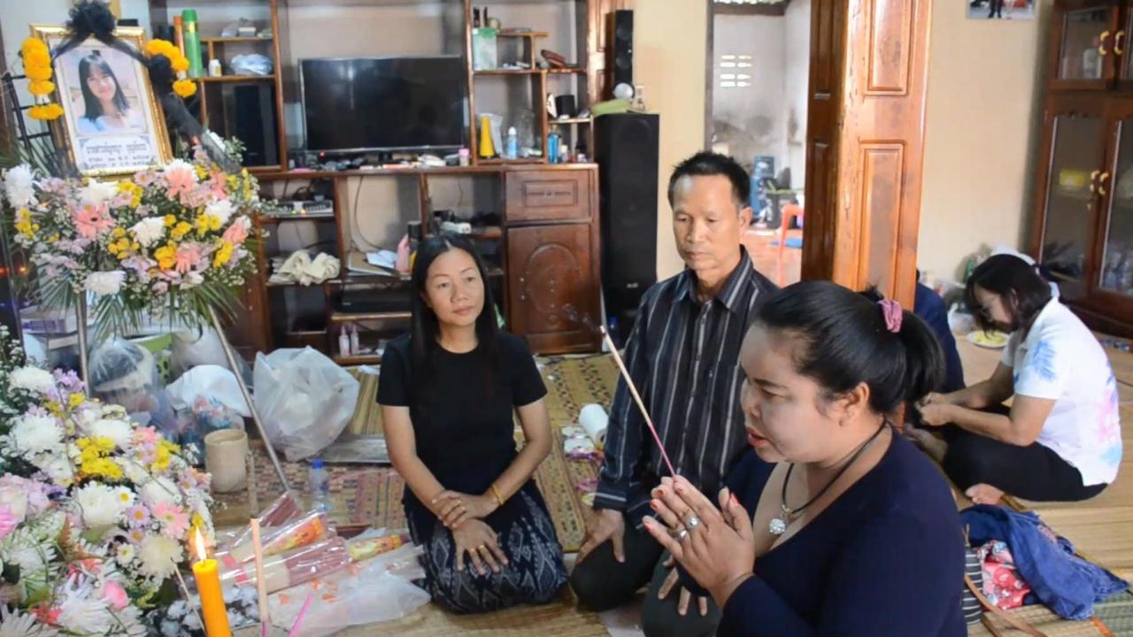 โดย เจ๊อ๋อ ได้มอบพวงหรีดแสดงความอาลัย ก่อนขอตัวเดินไปเข้าห้องน้ำ เสร็จแล้วเดินออกมาจุดธูปหน้าโลงศพน้องอุ๋งอิ๋ง พร้อมกับบอกว่า วันนี้แม่อ๋อมาแล้วตามจุดประสงค์ของน้องอุ๋งอิ๋งและน้องจูน ที่ไปพบแม่ตามจิตสัมผัส ขอให้ไปสู่สุคติ ให้น้องไปเกิดในภพภูมิที่ดี ชาติหน้าให้ไปเป็นนางฟ้าบนสวรรค์ ขอบใจที่น้องอุ๋งอิ๋งช่วยประคองไม่ให้ลื่นล้มในห้องน้ำ จากนั้นได้มอบเงินร่วมทำบุญ 3 หมื่นบาท และหนังสืออ่านคลายเครียดจำนวนหนึ่งให้พ่อกับแม่น้องอุ๋งอิ๋ง พร้อมกับเล่าถึงสาเหตุที่มาทำบุญกับน้องอุ๋งอิ๋งว่า มีจิตสัมผัสว่าน้องอุ๋งอิ๋งและน้องจูนไปหา เพื่อขอส่วนบุญกับแม่อ๋อ และเมื่อสักครู่ได้เข้าห้องน้ำ ตนได้ลื่นในห้องน้ำ แต่คล้ายกับมีคนมาช่วยพยุง คิดว่าเป็นน้องอุ๋งอิ๋งแน่นอน ซึ่งนายคำสิงห์และนางสมบัติได้กล่าวขอบคุณเจ๊อ๋อที่มาร่วมทำบุญกับลูก