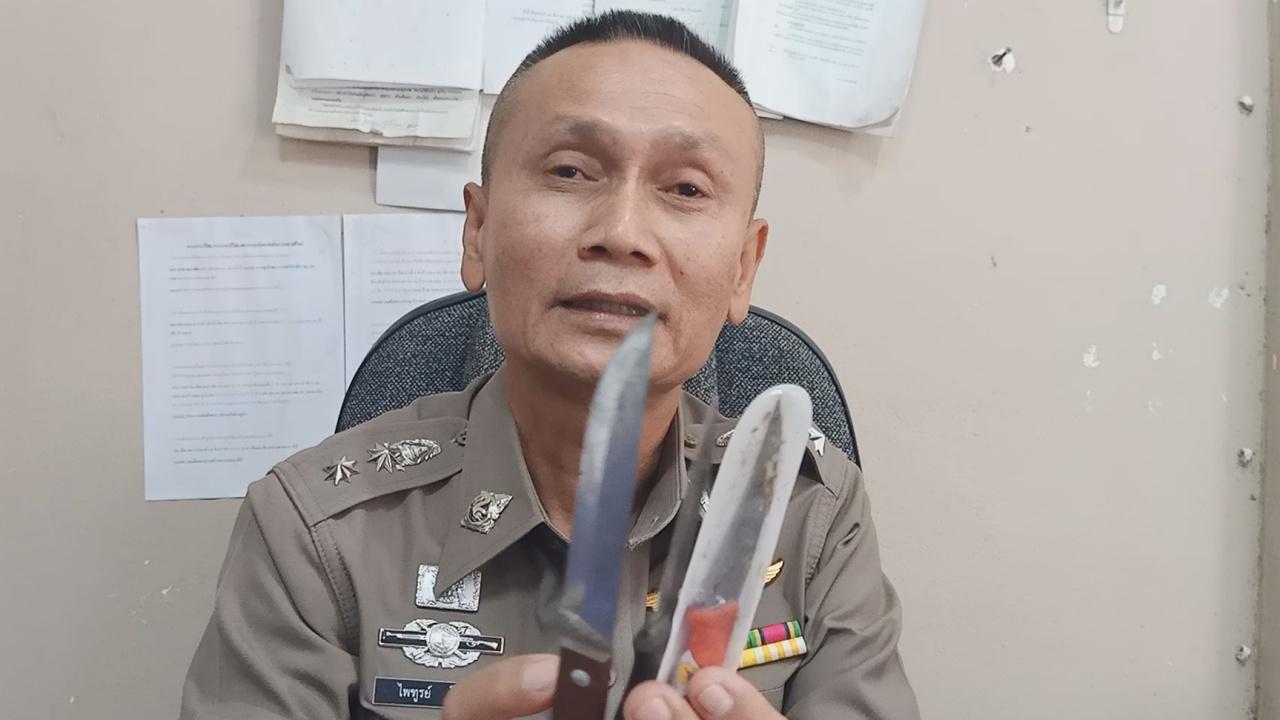 จากการตรวจสอบบริเวณที่พักอาศัยของนายจ่อยอย่างละเอียด พบมีดปอกผลไม้ยาวประมาณ 10 เซนติเมตร จำนวน 3 เล่ม อยู่ในถุงพลาสติกซุกซ่อนอยู่ใต้ที่นอน ก่อนควบคุมตัวพร้อมกับทรัพย์สินของนายจ่อย ไปสงบสติอารมณ์ เนื่องจากนายจ่อยพูดจาไม่ค่อยรู้เรื่อง พร้อมกับซื้อข้าวเหนียวและปิ้งตับไก่มาให้นายจ่อยกิน ก่อนรายงานให้ผู้บังคับบัญชารับทราบตามลำดับขั้นตอน หลังจากควบคุมตัวมาโรงพัก นายจ่อย พูดจาไม่หยุดและจับใจความในบางตอนได้ว่า เป็นเรื่องเกี่ยวกับความเชื่อ ไสยศาสตร์ มนตร์ดำ รวมทั้งสิ่งลี้ลับ แต่พูดรู้เรื่องเป็นบางครั้ง ผู้ช่วยเหลือเจ้าพนักงานบอกว่า วันนี้ตรงกับวันพระ คนสติไม่ดีมักจะมีอาการแบบนี้