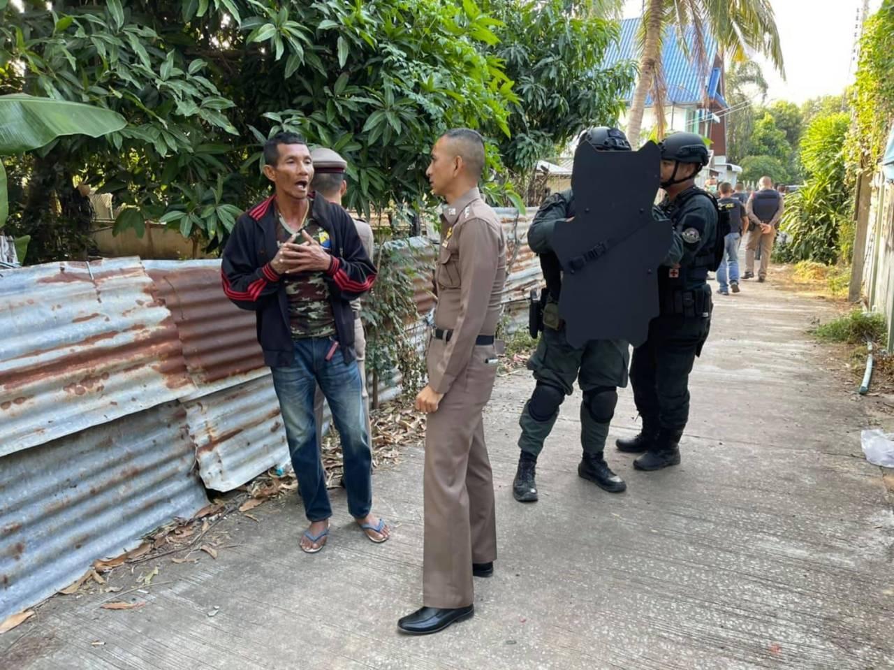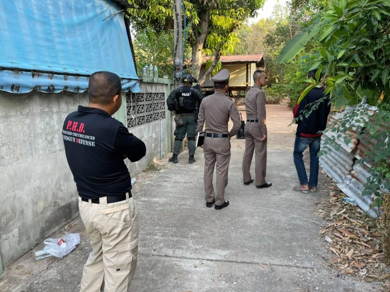 ล่าสุด รายงานระบุว่า ผู้ก่อเหตุยังไม่ยอมมอบตัว เก็บตัวซ่อนอยู่บนบ้าน ขณะที่ ตำรวจไม่กล้าเข้าชาร์จจับกุมตัว เพราะคนร้ายมีปืนลูกซองยาว.