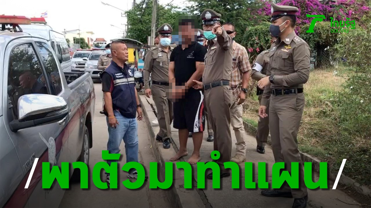 ตำรวจ สภ.เมืองกาฬสินธุ์ คุมตัวน้ำเพชร อดีตนักมวยไทย ที่เกิดคลั่งก่อเหตุฉุดสาว 3 ราย ไปทำแผนประกอบคำรับสารภาพ เผยขาดยาระงับประสาทแล้วเสพยากับดื่มเบียร์ ก่อนส่งศาลฝากขังต่อไป