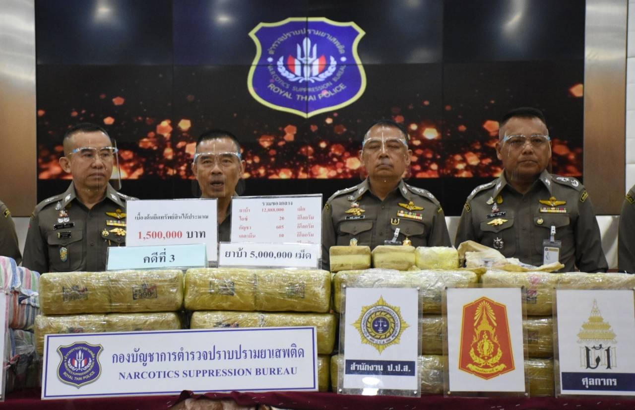 ตำรวจ ปส.จับกุมขบวนการค้ายาเสพติดและเครือข่าย 10 คดี ยึดของกลางยาบ้า 12.8 ล้านเม็ด ไอซ์ 20 กก.กัญชา 605 กก. เคตามีน 10 กก. เฮโรอีน 2 กก.และฝิ่นดิบ 4 กก. ได้ผู้ต้องหารวม 22 ราย