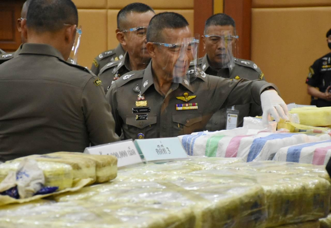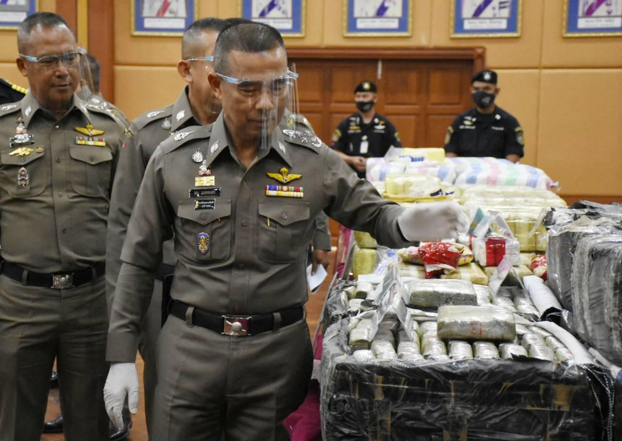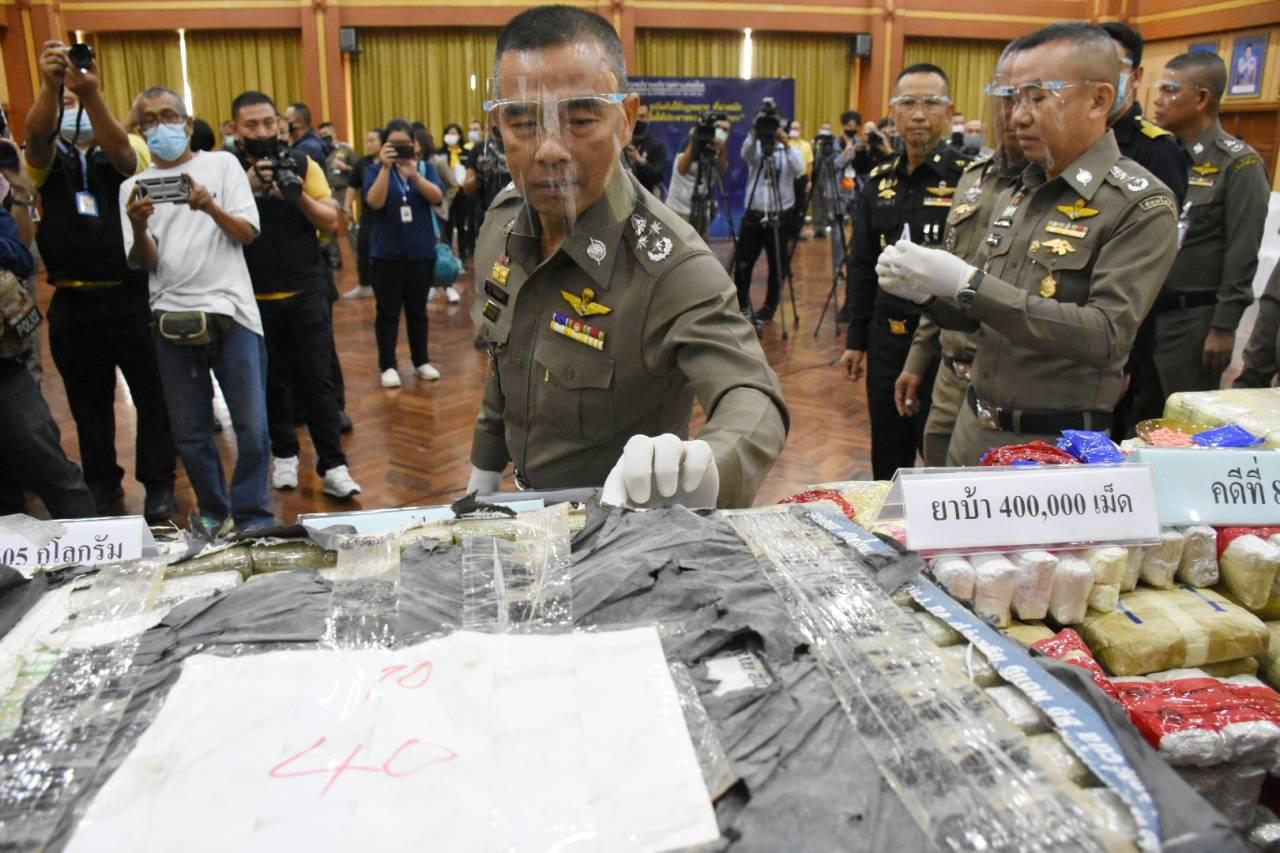 ที่ บช.ปส. เมื่อวันที่ 15 ธ.ค. พล.ต.อ.ธนู เมฆหมอก รอง ผบ.ตร. พล.ต.ท.มนตรี ยิ้มแย้ม ผบช.ปส. พล.ต.ต.พรชัย เจริญวงศ์ รอง ผบช.ปส. ร่วมกับ ป.ป.ส. กรมศุลกากร และกองอำนวยการรักษาความมั่นคงภายในราชอาณาจักร (กอ.รมน.) ร่วมกันแถลงข่าวจับกุมขบวนการค้ายาเสพติด 10 คดี ผู้ต้องหา 22 คน รวมของกลางยาบ้า 12.8 ล้านเม็ด ไอซ์ 20 กิโลกรัม กัญชา 605 กิโลกรัม เคตามีน 10 กิโลกรัม เฮโรอีน 2 กิโลกรัม และฝิ่นดิบ 4 กิโลกรัม