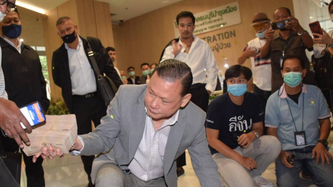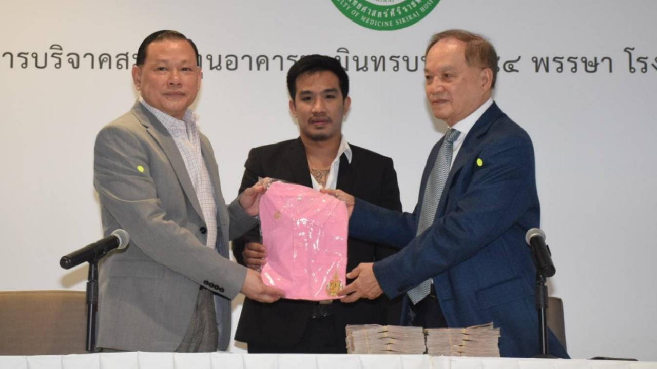 "สันธนะ" ควง "เสี่ยโป้" นำเงินสด 2 ล้านใส่กระเป๋าล้อลากบริจาคมูลนิธิศิริราช สมทบทุนการสร้างอาคารนวมินทรบพิตร 84 พรรษา ยันกระชากหน้ากาก "ดารา 1" ฐานพยายามฉ้อโกง