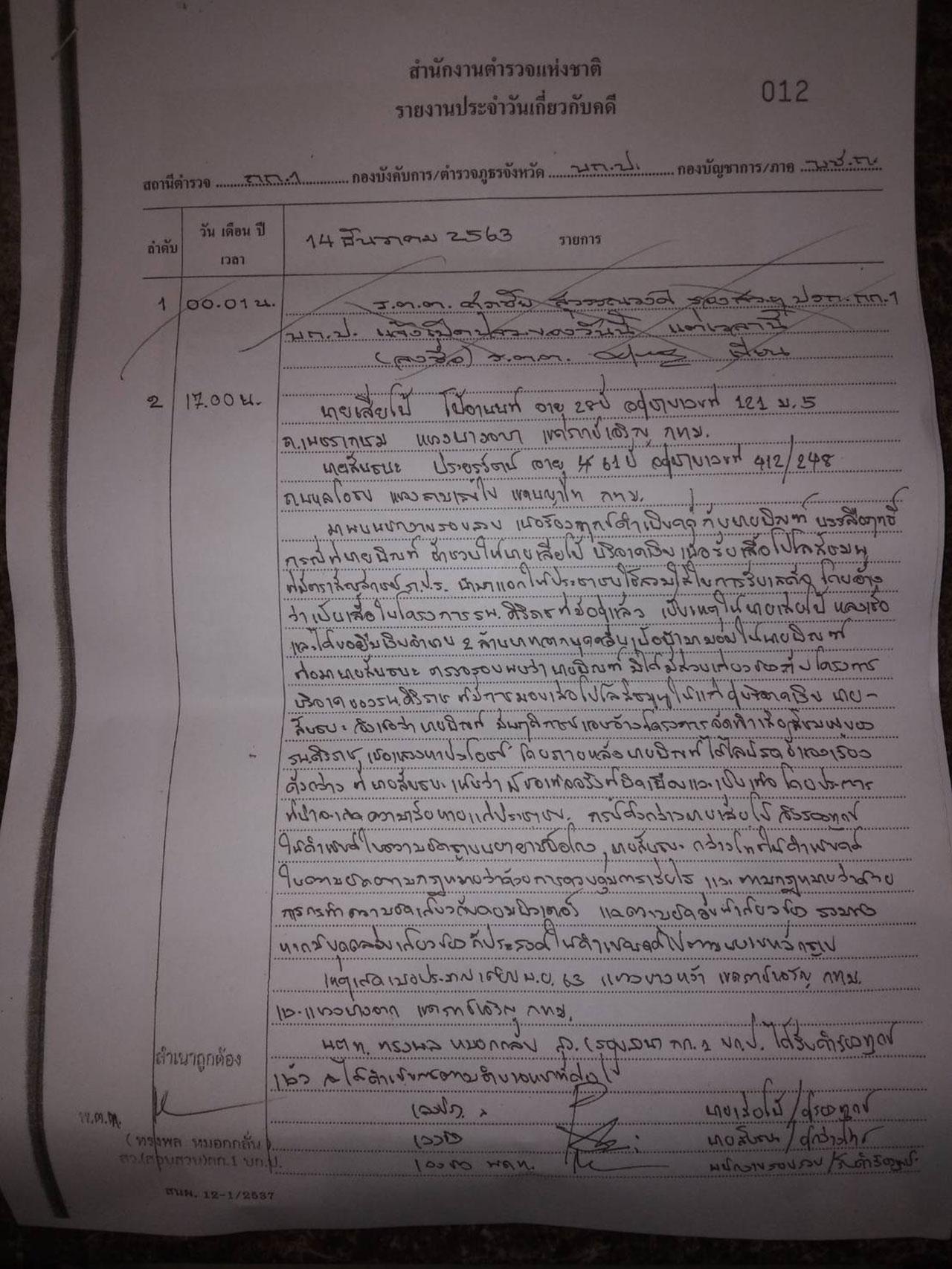 ทั้งนี้มีรายงานว่า เมื่อวันที่ 14 ธ.ค.ที่ผ่านมา เสี่ยโป้ ได้เดินทางเข้าแจ้งความกับ พ.ต.ท.ทรงพล หมอกกลั่น สว.(สอบสวน) กก.1 บก.ป.ให้ดำเนินคดีกับ นายบิณฑ์ บรรลือฤทธิ์ ฐานพยายามฉ้อโกง หลังจากที่ตรวจสอบแล้วพบว่า นายบิณฑ์ ไม่ได้มีส่วนเกี่ยวข้องกับโครงการของทาง รพ.ศิริราชแต่อย่างใด ขณะที่ นายสันธนะ ก็ได้กล่าวโทษต่อพนักงานสอบสวนคนเดียวกัน ให้ดำเนินคดี กับนายบิณฑ์ บรรลือฤทธิ์ ในความผิดตามกฎหมายว่าด้วยการควบคุมการเรี่ยไร และการกระทำความผิดเกี่ยวกับคอมพิวเตอร์ และความผิดอื่นที่เกี่ยวข้อง ทั้งนี้ท้ายคำกล่าวโทษระบุไว้ด้วยว่า หากมีบุคคลอื่นเกี่ยวข้องก็ประสงค์ให้ดำเนินคดีไปตามพยานหลักฐาน.