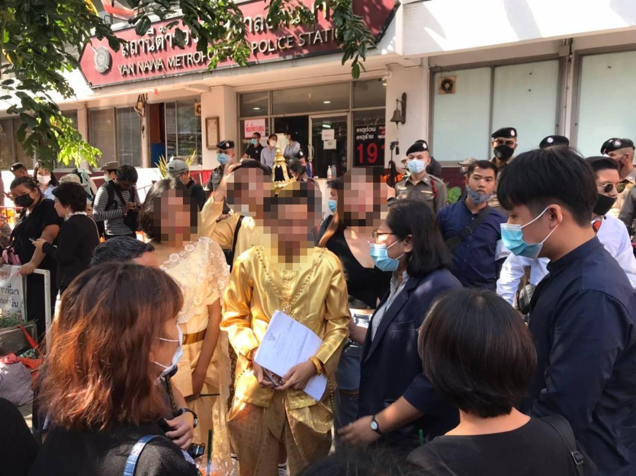 เมื่อเวลา 10.00 น. วันที่ 17 ธ.ค. ที่ สน.ยานนาวา น.ส.จตุพร แซ่อึง อายุ 23 ปี สมาชิกกลุ่มบุรีรัมย์ปลดแอก และ นายนภสินธุ์ (สงวนนามสกุล) อายุ 16 ปี เข้าพบพนักงานสอบสวนเพื่อรับทราบข้อกล่าวหาตามหมายเรียกในคดี ม.112 จากกรณีแต่งกายในชุดไทยไปร่วมกิจกรรมแฟชั่นโชว์ที่ถนนสีลม เมื่อวันที่ 29 ตุลาคมที่ผ่านมา หลัง น.ส.วริษนันท์ ศรีบวรธนกิตติ์ หรือแอดมินเจน หนึ่งในแอดมินเพจเชียร์ลุง มาแจ้งความไว้ก่อนหน้านี้ โดยบรรยากาศหน้าโรงพัก มีมวลชนจำนวนหนึ่งแต่งกายด้วยชุดไทยมาให้กำลังใจ