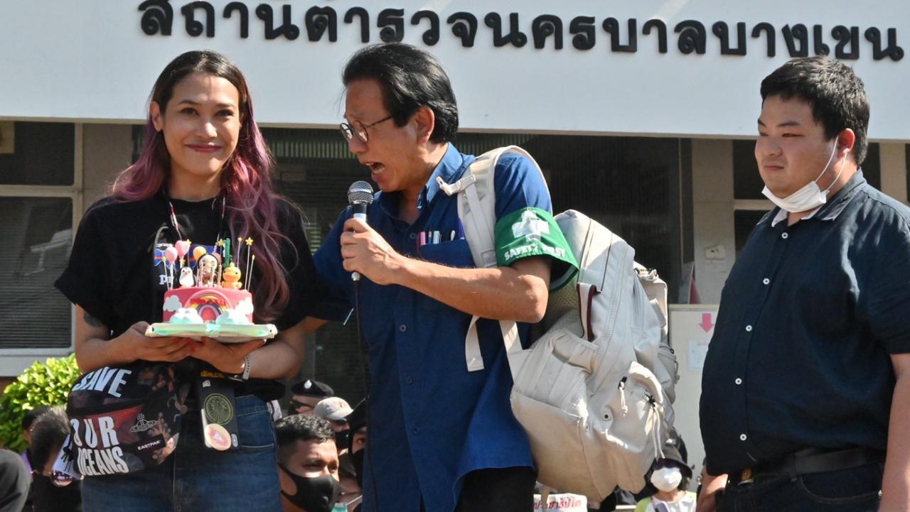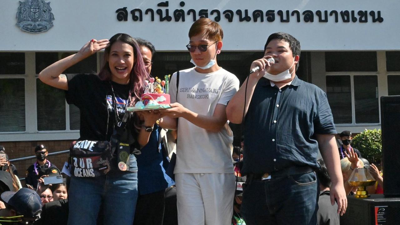 แกนนำกลุ่มราษฎร-แนวร่วม-ทีมผู้สนับสนุน ตบเท้าเข้ารับทราบข้อกล่าวหา ม.112-116 ขณะที่ “แม่ยกทราย” ถึงกับกลั้นน้ำตาไว้ไม่อยู่ สุดตื้นตันใจ เจอเซอร์ไพรส์เค้กวันเกิดล่วงหน้า