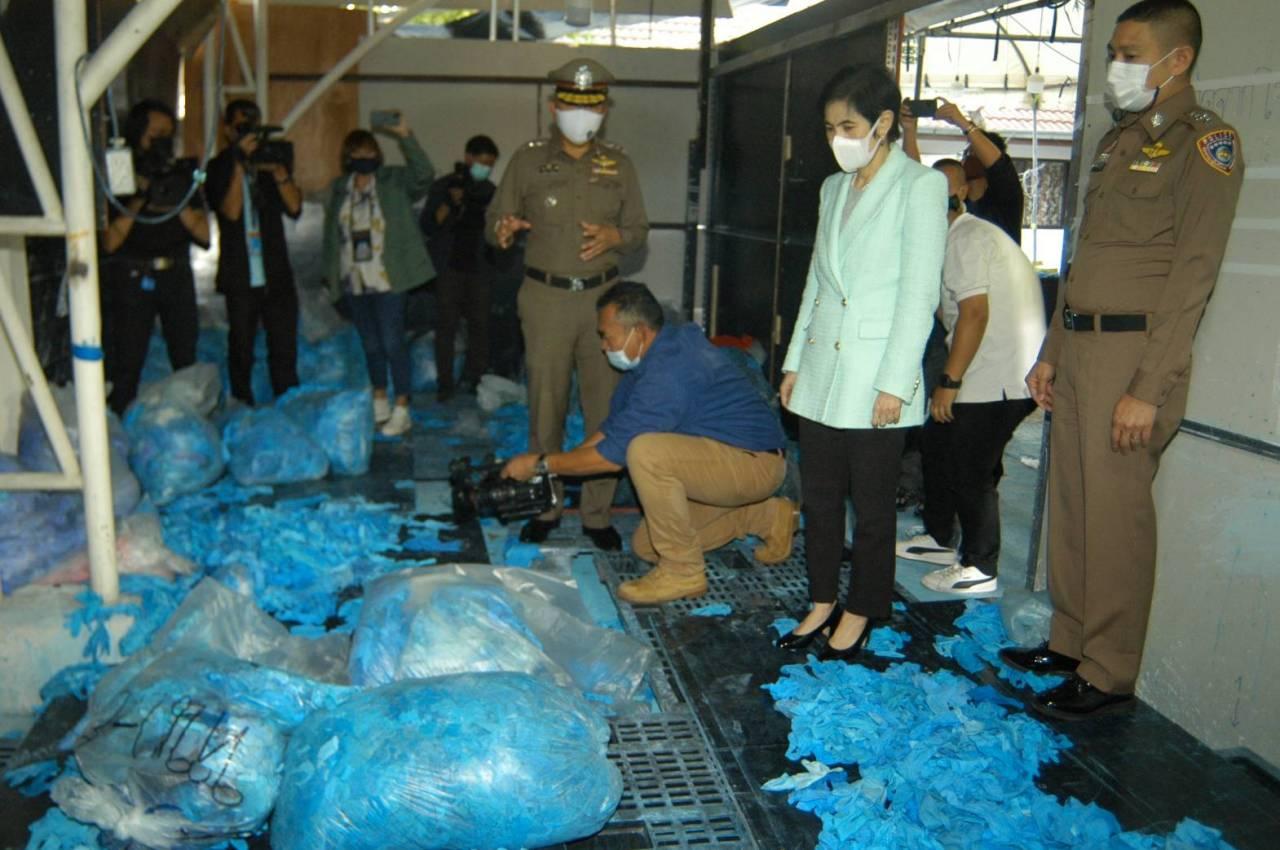 พล.ต.ท.เพิ่มพูน กล่าวว่า จากการตรวจค้นพบว่าสถานที่นี้ผลิตถุงมือยางโดยไม่ได้รับอนุญาต โดยคนกลุ่มนี้ได้นำถุงมือยางสีขาวมาทำความสะอาดแล้วย้อมสีฟ้าให้เหมือนถุงมือไนไตรต์ที่ใช้ในการแพทย์ ก่อนนำมาบรรจุลงกล่องเพื่อนำไปขายใหม่ในราคาที่สูงขึ้น เนื่องจากถุงมือไนไตรต์มีราคาในท้องตลาดสูง จากนี้ต้องยึดถุงมือทั้งหมดไปตรวจสอบว่าผ่านการใช้งานแล้วหรือไม่ ก่อนติดตามหาแหล่งที่มาของถุงมือเหล่านี้ แล้วดำเนินคดีกับผู้กระทำผิดตามกฎหมาย จากการสอบถามผู้ผลิตเบื้องต้น อ้างว่ายังไม่ได้นำถุงมือเหล่านี้ไปขาย เพียงแต่เป็นการทดลองทำก่อน ทั้งยังอ้างว่าเคยทำธุรกิจเกี่ยวกับถุงมือยางมาก่อน