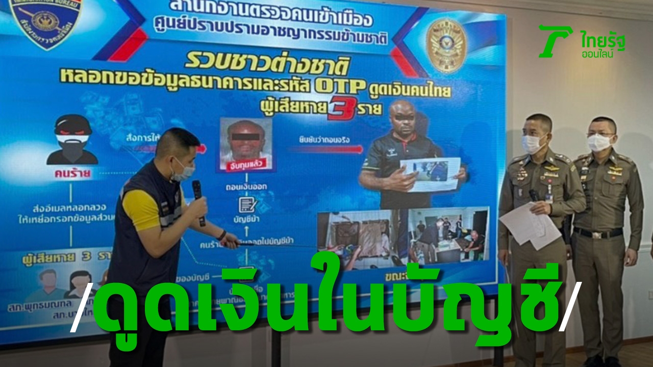 สตม.รวบแก๊งไนจีเรียหลอกขอข้อมูลธนาคาร และรหัส OTP มีผู้เสียหาย 3 ราย สูญเงินจำนวนมาก ทั้งนี้หากประชาชนพบเบาะแสการกระทำผิด แจ้งมายัง 1178 ได้ตลอด 24 ชม.