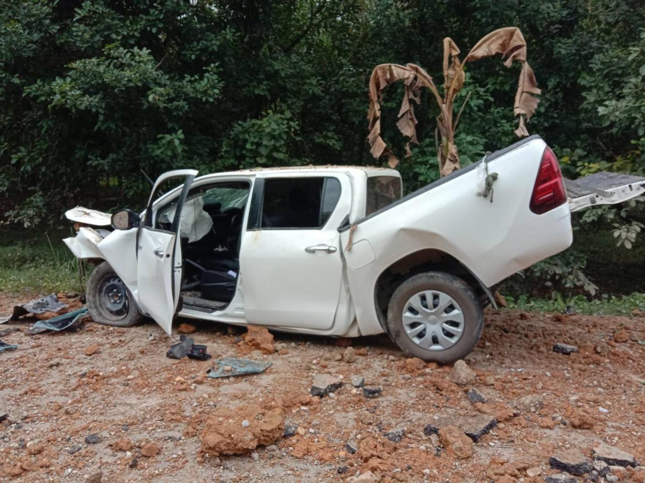 ต่อมาหลังรับแจ้งเหตุ พ.ต.อ.สุธน สุขวิเศษ รอง ผบก.ภ.จว.นราธิวาส พ.ต.อ.เมธา สิงหะเสนา ผกก.สภ.ศรีสาคร และกำลังเจ้าหน้าที่จำนวนหนึ่ง ได้เดินทางมาตรวจสอบที่เกิดเหตุ พบหลุมกลางถนน ลึก 1 เมตร กว้าง 2 เมตร มีซากเศษชิ้นส่วนของระเบิดแสวงเครื่องที่คนร้ายประกอบใส่ไว้ในถังแก๊สปิกนิก หนัก 50 กก. จุดชนวนด้วยวิทยุสื่อสาร ตกกระจายเกลื่อนพื้นถนนและพงหญ้ารกทึบริมทาง เจ้าหน้าที่จึงได้เก็บรวบรวมไว้เป็นหลักฐาน
